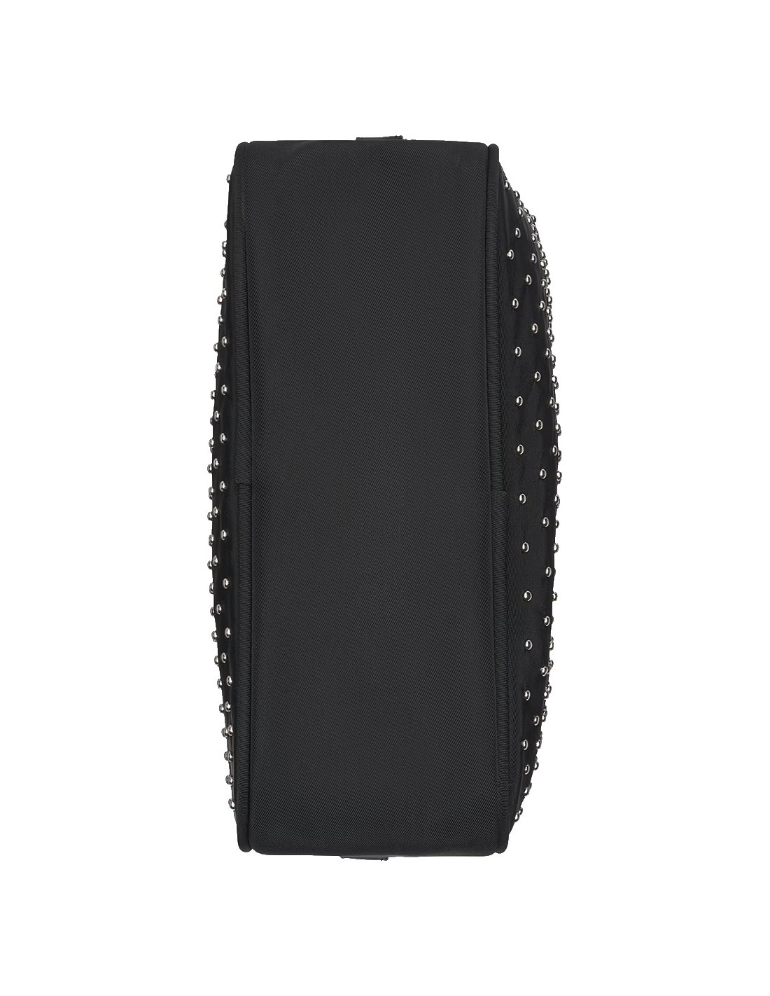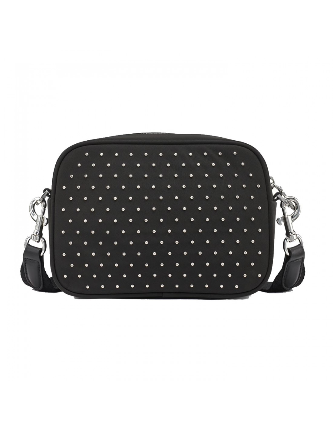 Una bandolera tipo camera confeccionada en un material resistente y duradero, destacando por su detalle especial de tachuelas decorativas y correa ancha ajustable y extraíble.