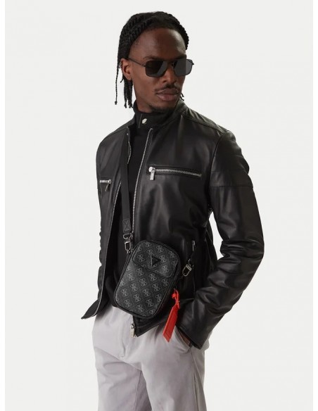 MINI BANDOLERA GUESS MILANO CON LOGOTIPO 4G, COLOR NEGRO