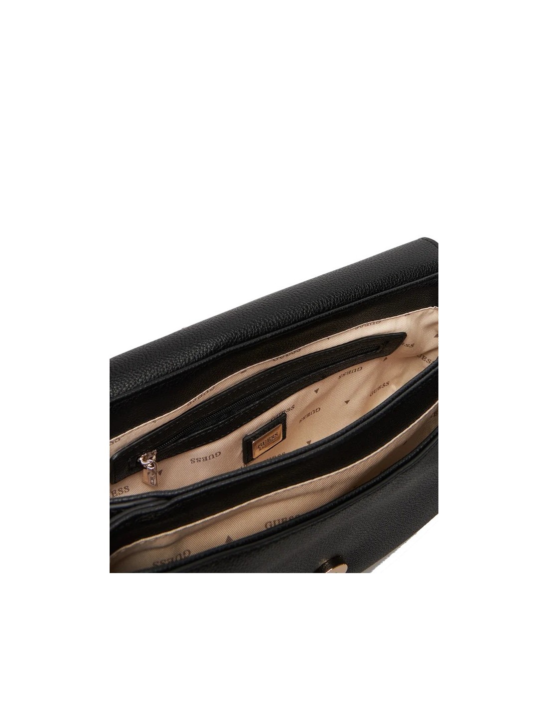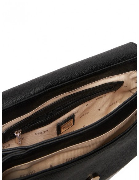 BANDOLERA DE MUJER CON SOLAPA DE GUESS EN COLOR NEGRA