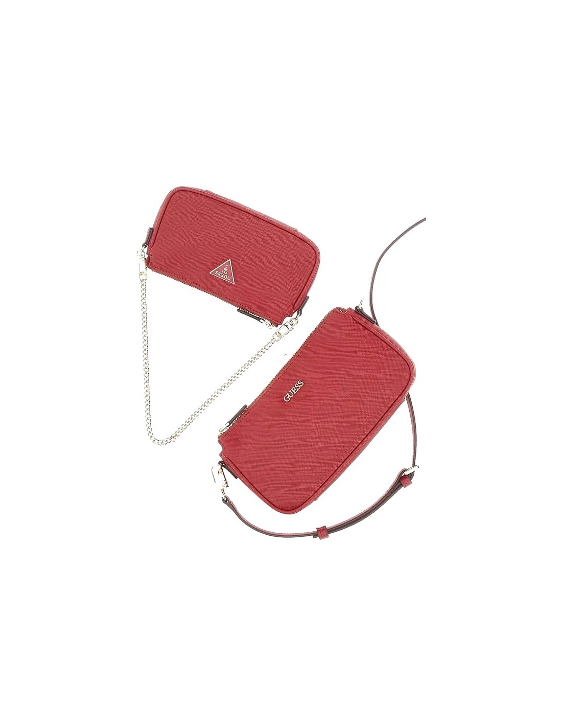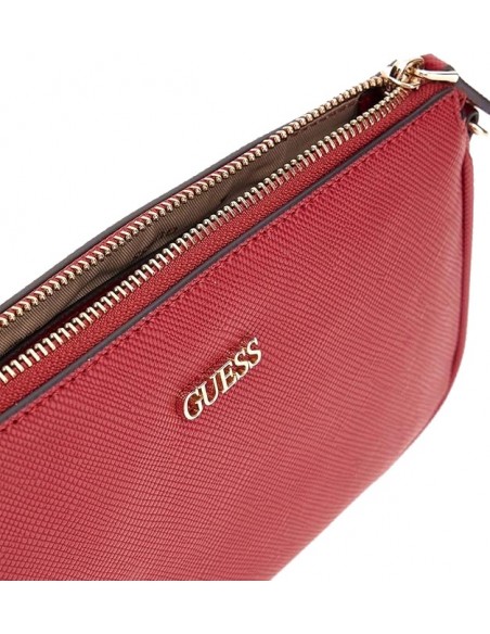 MINI BANDOLERA DOBLE GUESS NOELLE SAFFIANOEN COLOR GRANATE