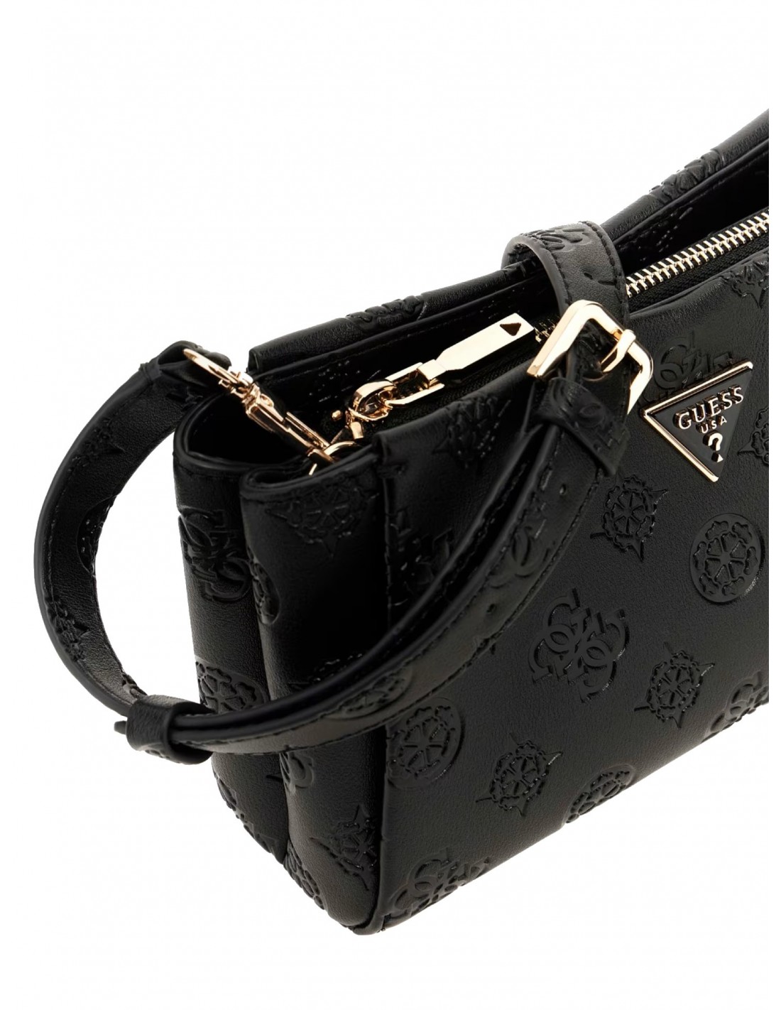 MINI BOLSO DE MANO GUESS TISHA CON LOGOTIPO 4G PEONY, BANDOLERA, NEGRO