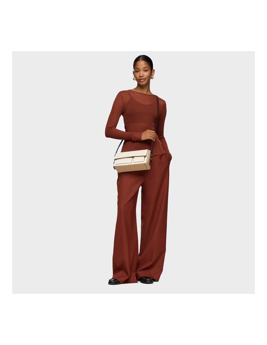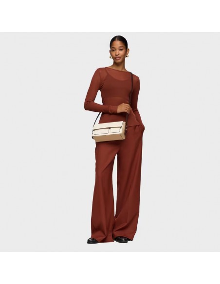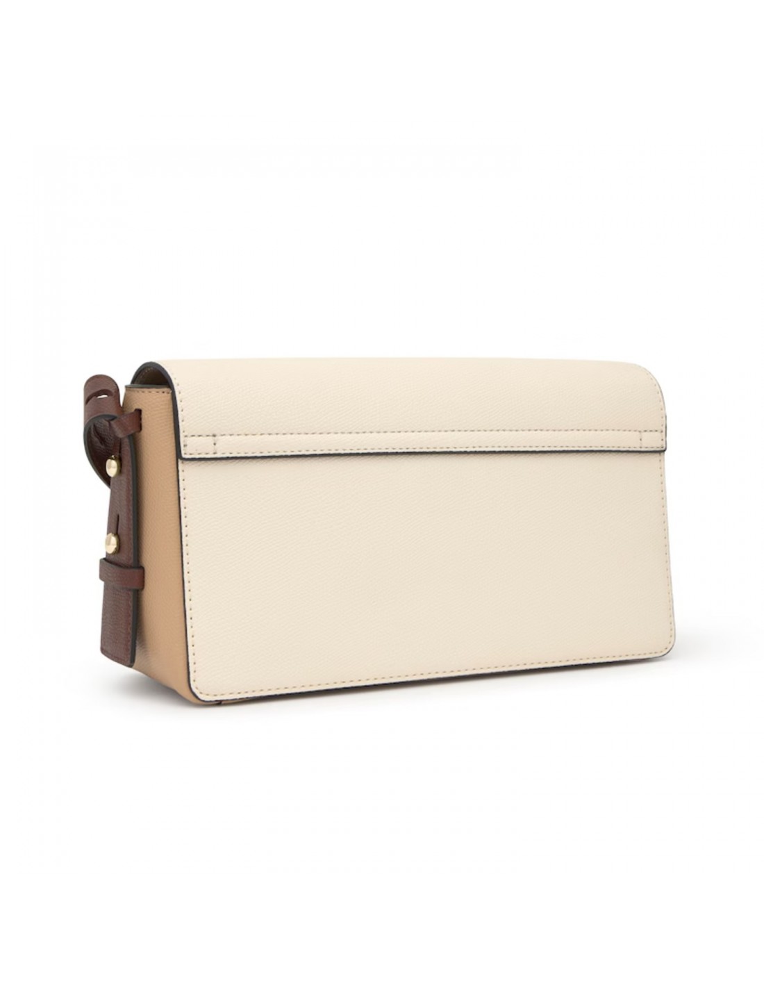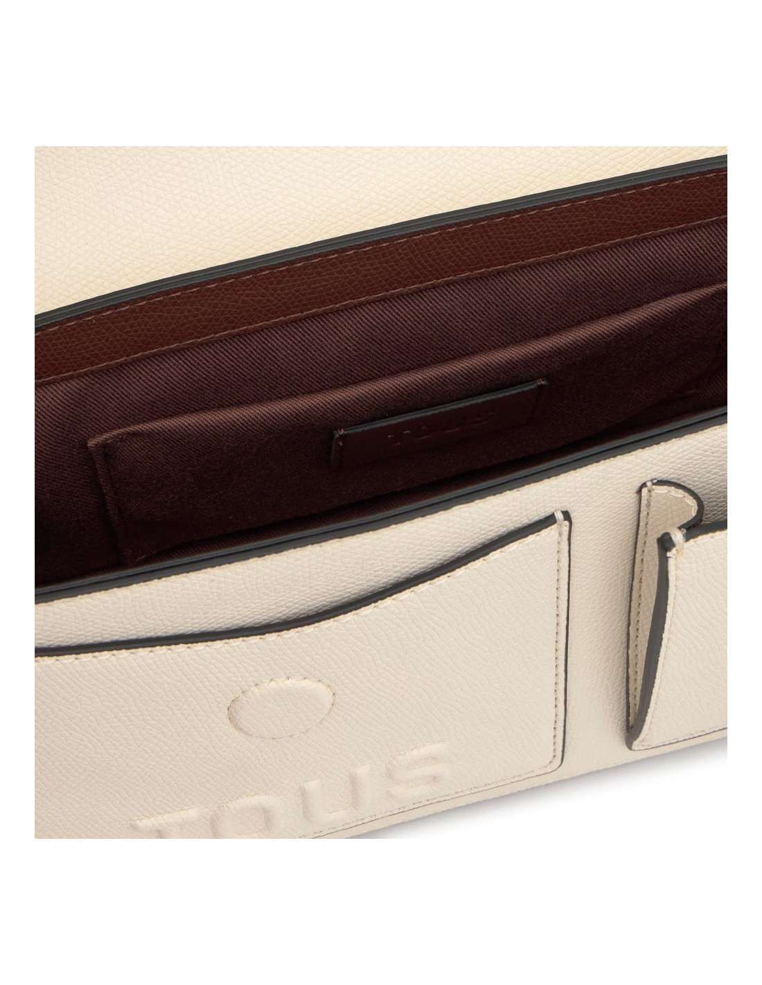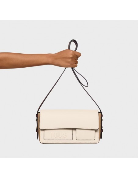 El bolso bandolera mediano TOUS Back to Basics está fabricado en poliuretano y destaca por su elegante combinación de colores beige y marrón.