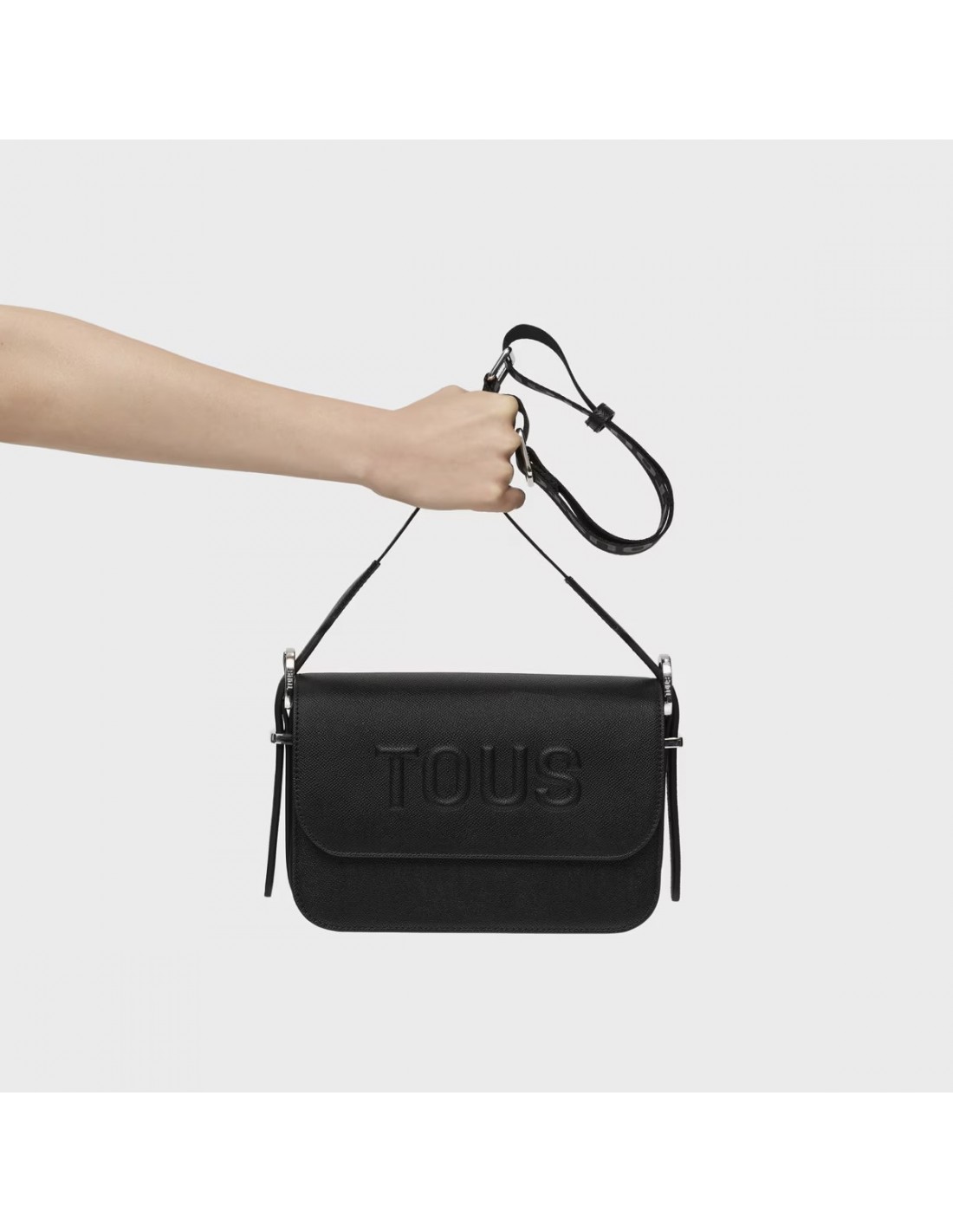 Fabricada en poliuretano, la bandolera mediana TOUS Brenda en color negro destaca por su elegancia y versatilidad.