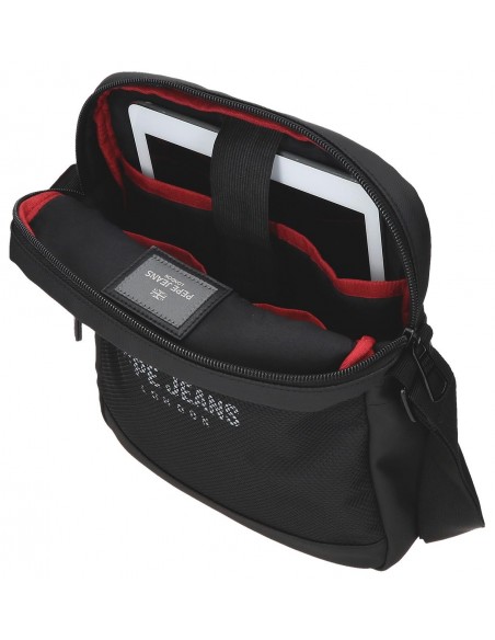 BANDOLERA PORTATABLET PEPE JEANS PJL DURHAM, DOBLE COMPARTIMENTO, NEGRO