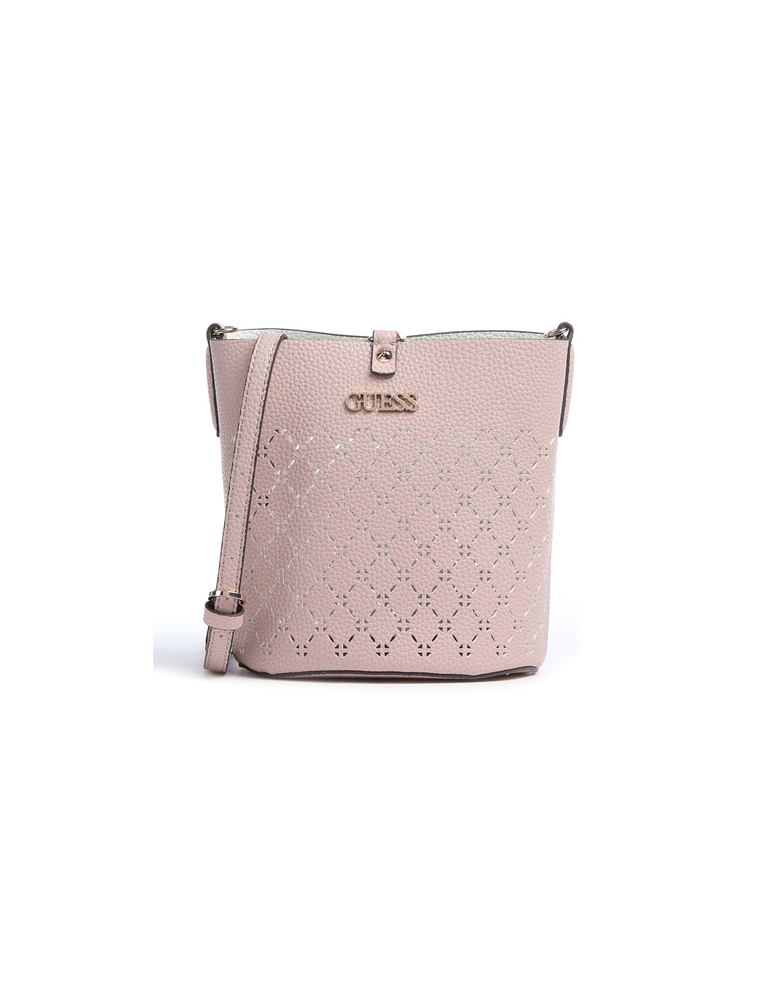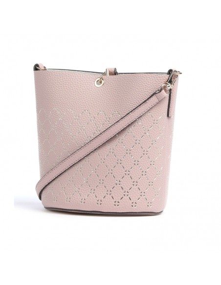 Confeccionado en material sintético con textura ligeramente granulada con bonitas perforaciones, el bolso tote Guess Amara presenta un elegante color rosa.