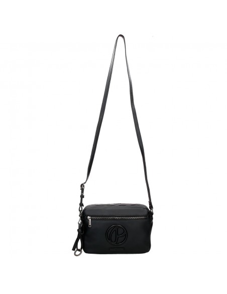 El bolso Pepe Jeans Mara está confeccionado en piel sintética color negro y presenta un gran logotipo frontal en relieve, entre otros distintivo de la marca.
