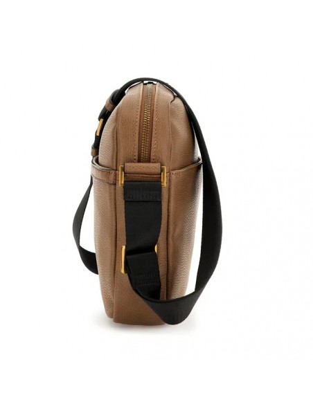 Confeccionada en material sintético color taupe, la bandolera Guess Riviera presenta una superficie ligeramente texturizada, herrajes y logotipoe en metal dorado pulido.
