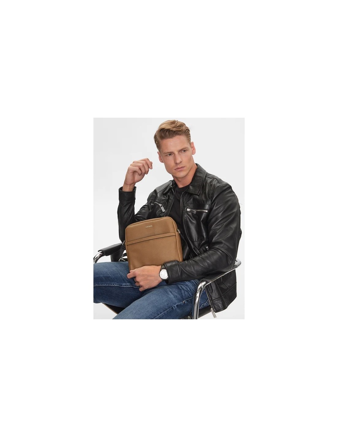 El bolso de hombre Guess cuenta tras su cierre de cremallera con un compartimento con bolsillo interior también con cremallera.
