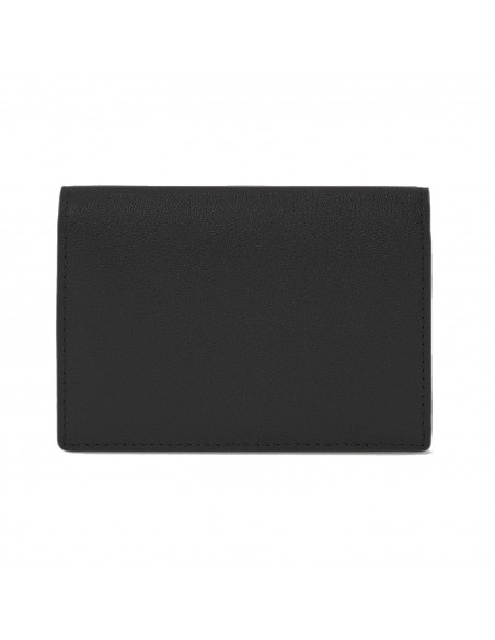 Una cartera de piel con cierre de solapa seguro y accesorios de la firma. Destaca por su elegancia y estilo único.