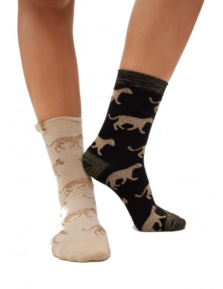 Pack de calcetines en algodón suave con estampado de leopardo. Destaca por su diseño exclusivo y elástico en el borde para un ajuste perfecto.