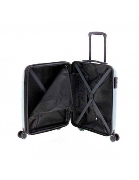 Dispone de un candado de combinación lateral para mantener tu equipaje seguro, además de un interior bien compartimentado con cintas elásticas de sujeción y varios bolsillos.