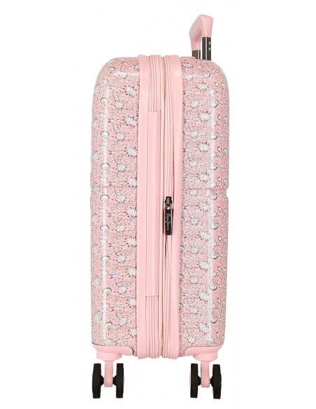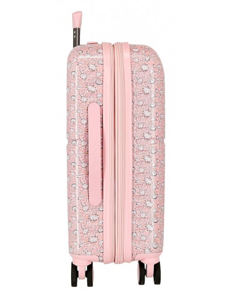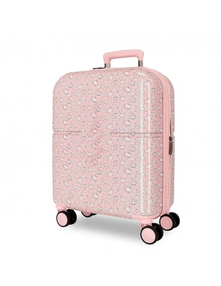 Maleta de cabina fabricada en ABS, un material resistente y ligero, que protege tus pertenencias frente a golpes y arañazos. Destaca por su diseño elegante y femenino en color rosa.