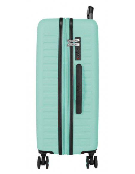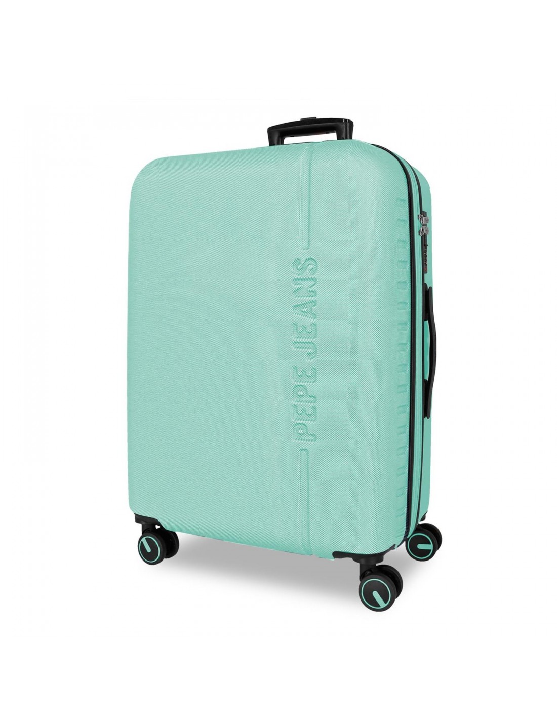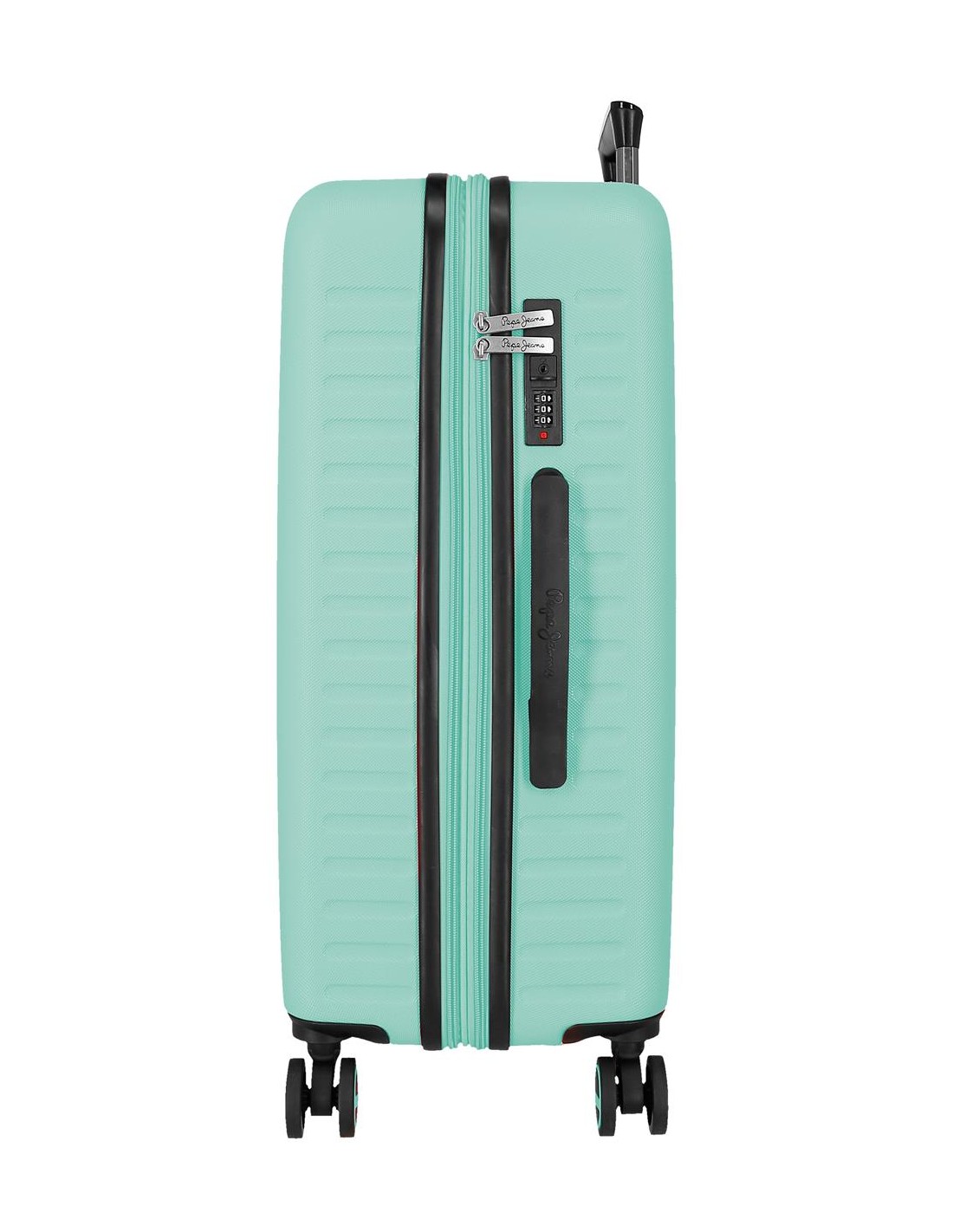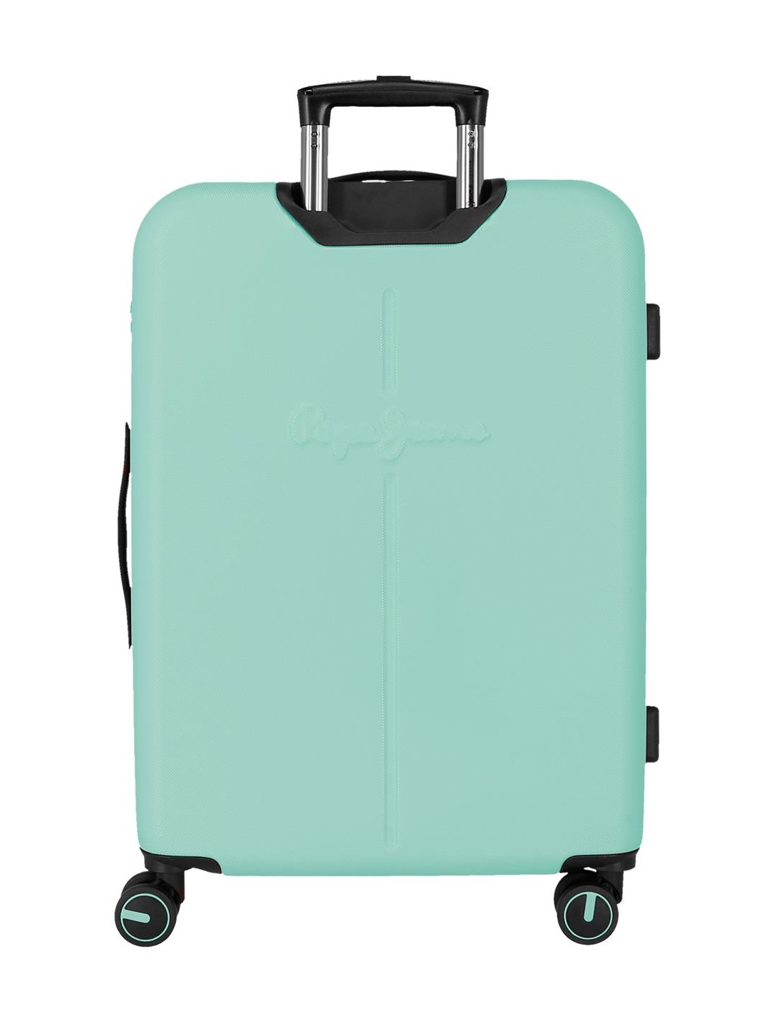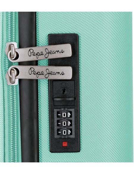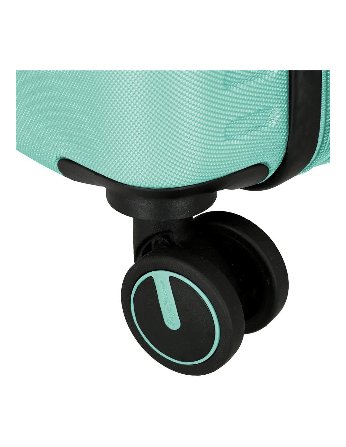 Fabricada en ABS, un material resistente y ligero, la Maleta Mediana Expandible Pepe Jeans Montana es ideal para proteger tus pertenencias frente a golpes y arañazos. Destaca por su diseño elegante y su color turquesa vibrante.