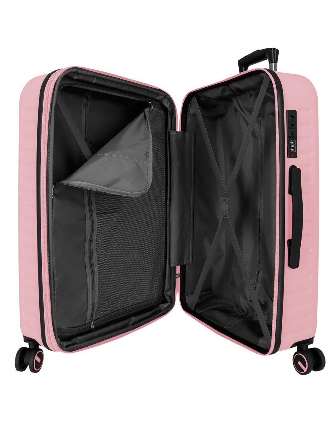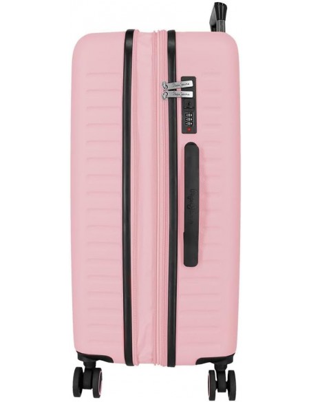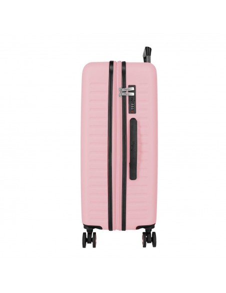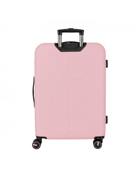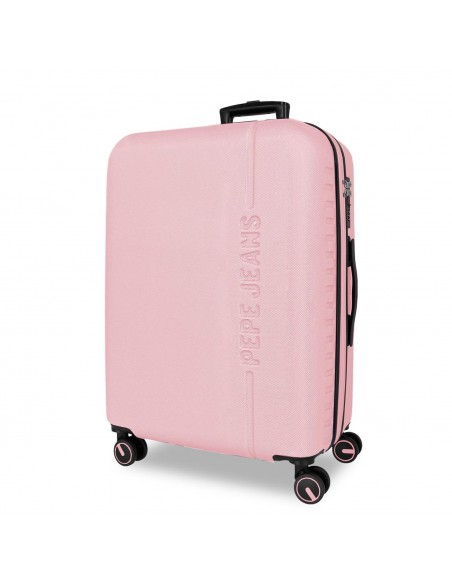 Fabricada en ABS, un material resistente y ligero, la Maleta Mediana Expansible Pepe Jeans Montana es ideal para proteger tus pertenencias contra impactos y arañazos. Destaca por su diseño elegante y su color rosa vibrante.