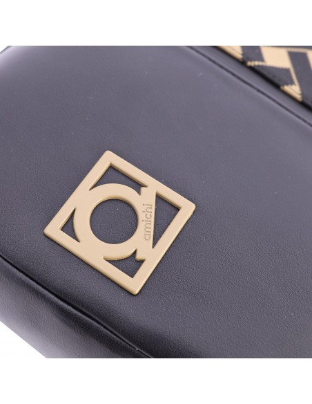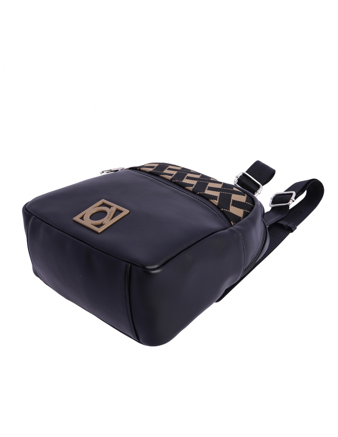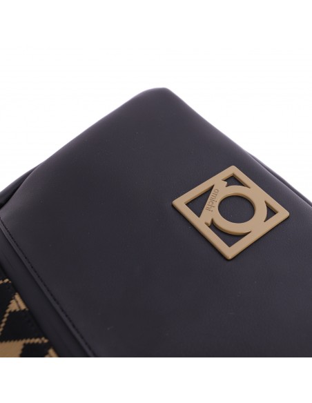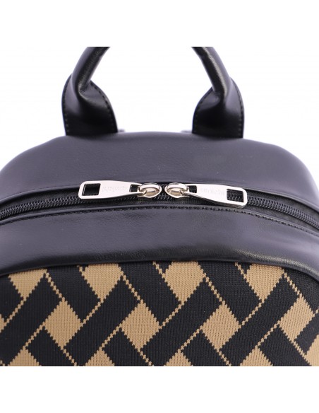 La mochila Amichi está confeccionada en PU color negro y marrón y presenta una superficie lisa formando el logo de Amichi. Destaca por su elegancia y versatilidad.