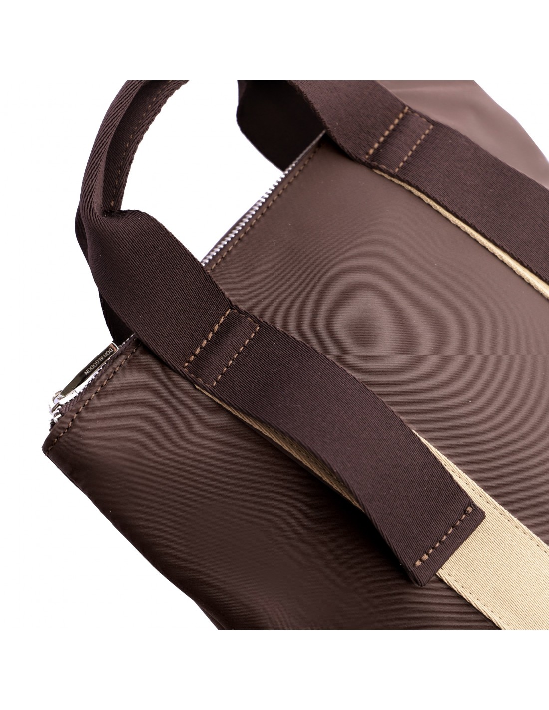 Bolso mochila para mujer DON ALGODON Helena de nailon, con el logo en la parte frontal. Las asas son de algodón.