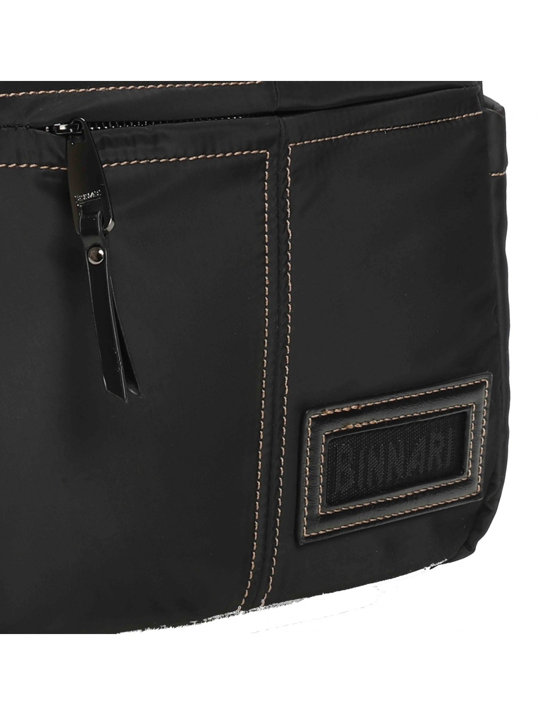 Los compartimentos adicionales incluyen un bolsillo con cremallera en la parte delantera, logo Binnari en cinta, 3 bolsillos interiores (uno con cremallera) y detalles metálicos en nickel.