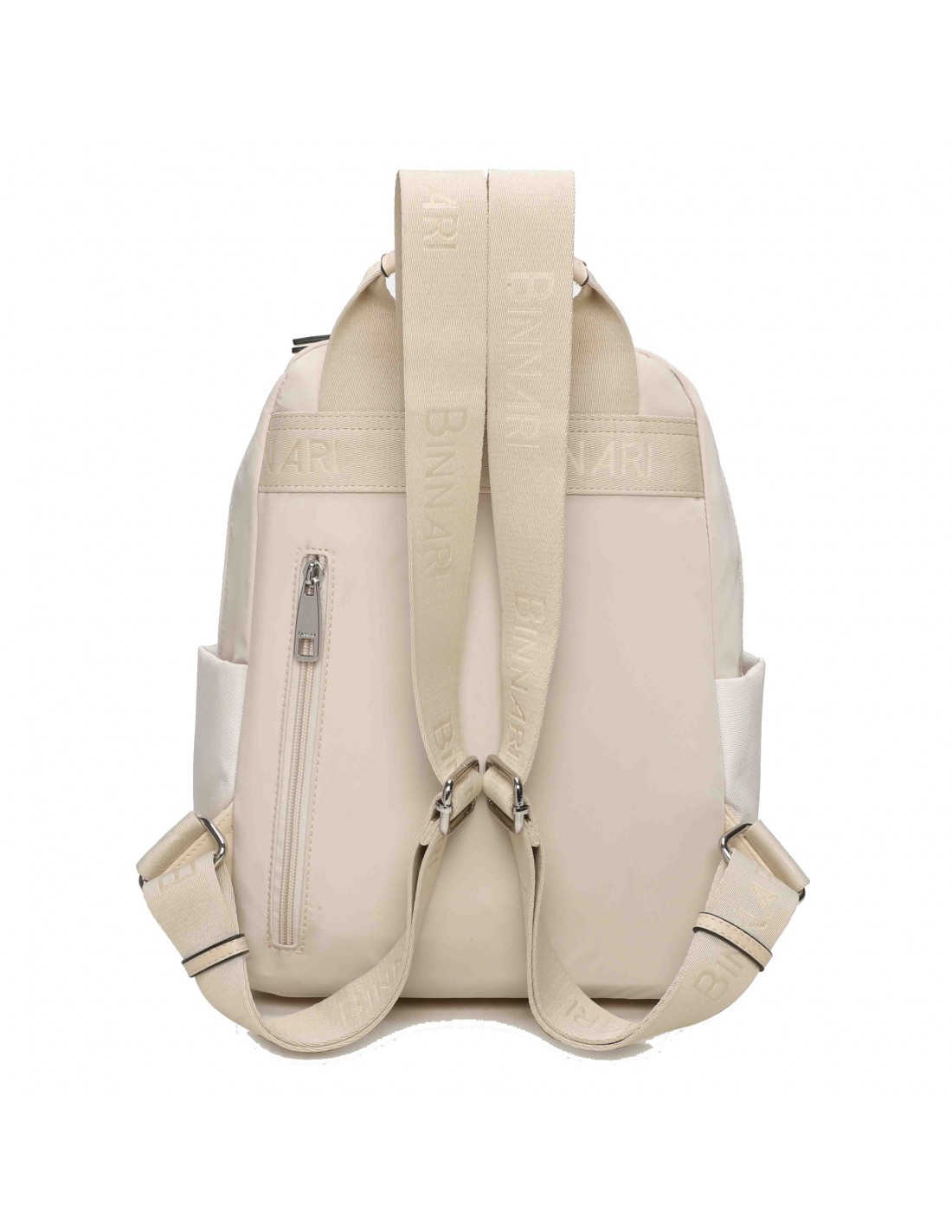 Confeccionado en nylon reciclable y detalles en PU de alta calidad, la Mochila Casual Binnari Aura en color Hielo destaca por su versatilidad y detalle especial en sus asas ajustables para llevarla también como bandolera.