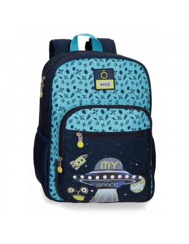 Mochila escolar Enso My Space confeccionada en un resistente y ligero material de poliéster, presenta un combinado de estampados de elementos espaciales y una enorme nave en el frontal. Cuenta con un detalle muy divertido, al presionar sobre la nave se encienden luces.