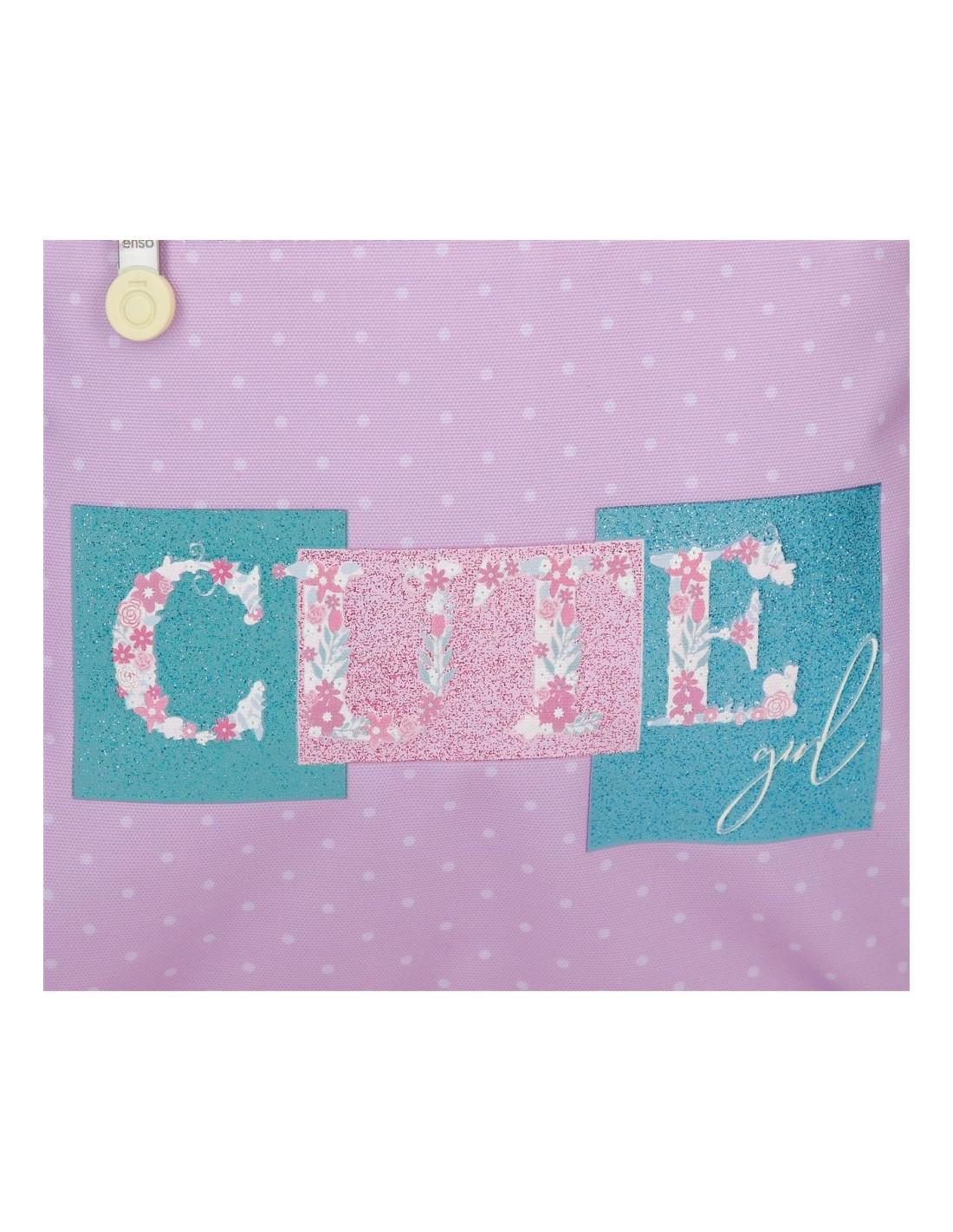 La mochila Enso escolar Cute Girl presenta una bonita combinación en tonos pastel, letrero Cute Gil, purpurina, flores y lunares. Ideal para todas las chicas bonitas por dentro y por fuera a las que le guste la sencillez.