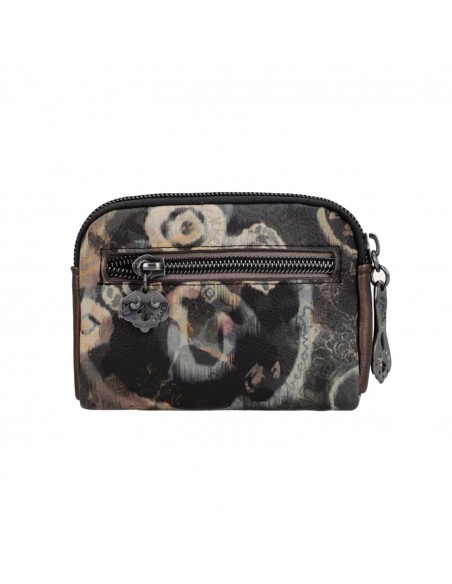 Versátil y práctico, este monedero se abre mediante cremallera en la parte superior y cuenta con un bolsillo extra en la parte trasera para guardar tus pertenencias de forma segura. En su interior, encontrarás un forro estampado y una anilla para llevar tus llaves contigo en todo momento.