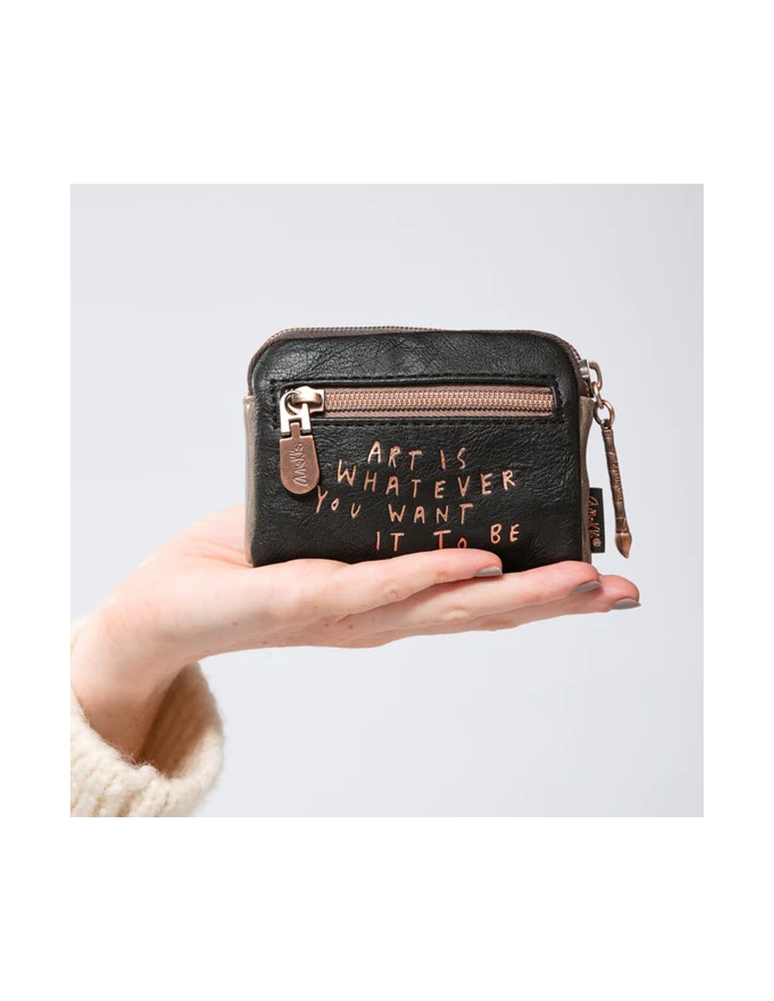 El monedero Anekke Shoen Black cuenta con un único compartimento con anilla interior para llaves tras su cierre de cremallera superior. Interior forrado con tela de la colección.