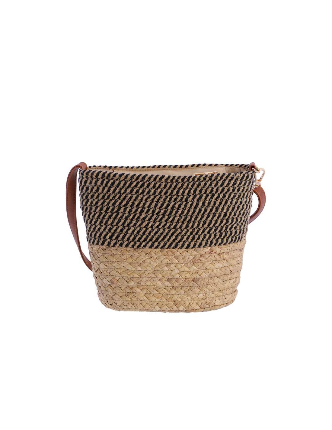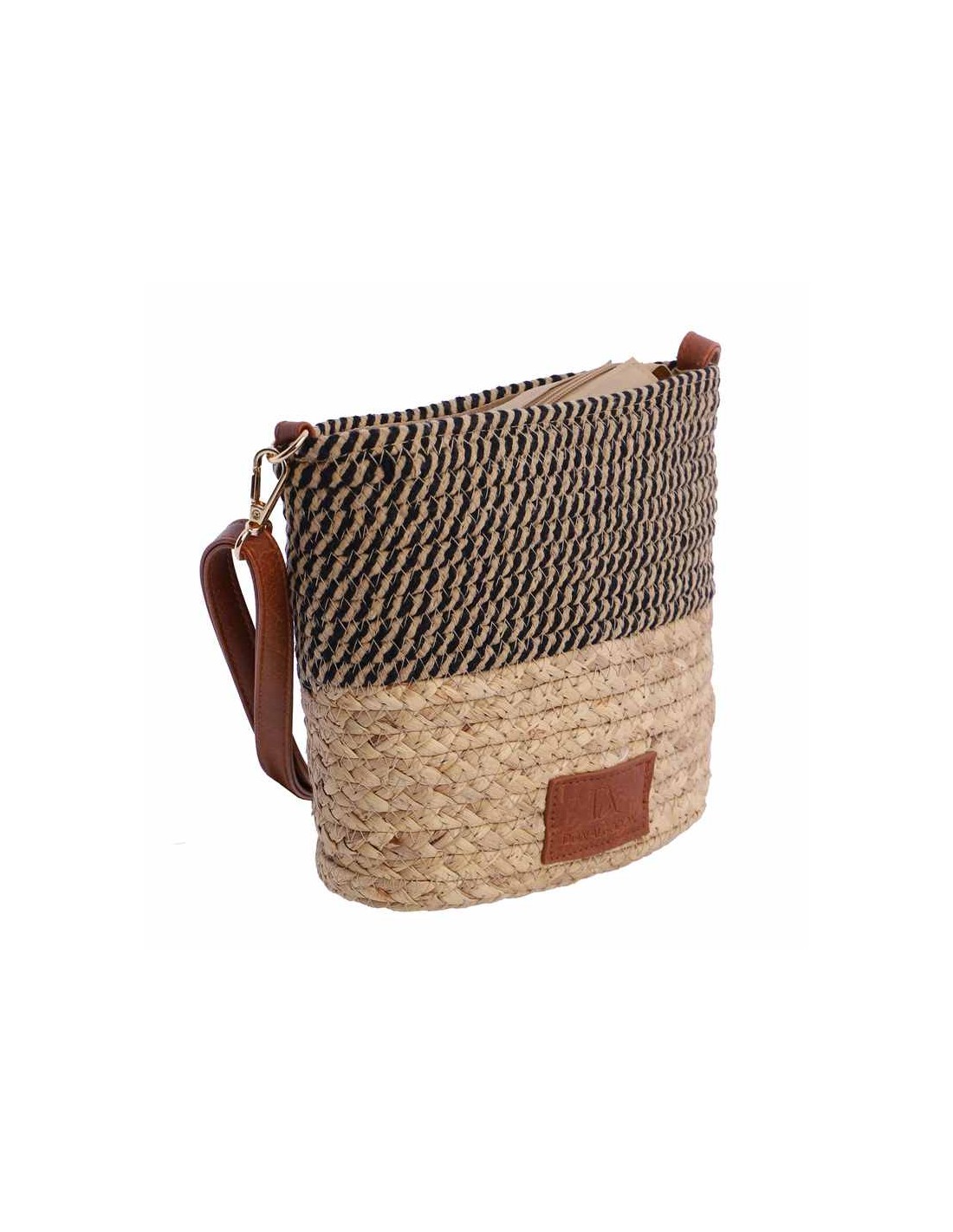 Una bandolera de Rafia Don Algodón, con detalles en Stripes y cierre de cremallera, elaborada con materiales naturales que resaltan su estilo único y especial.