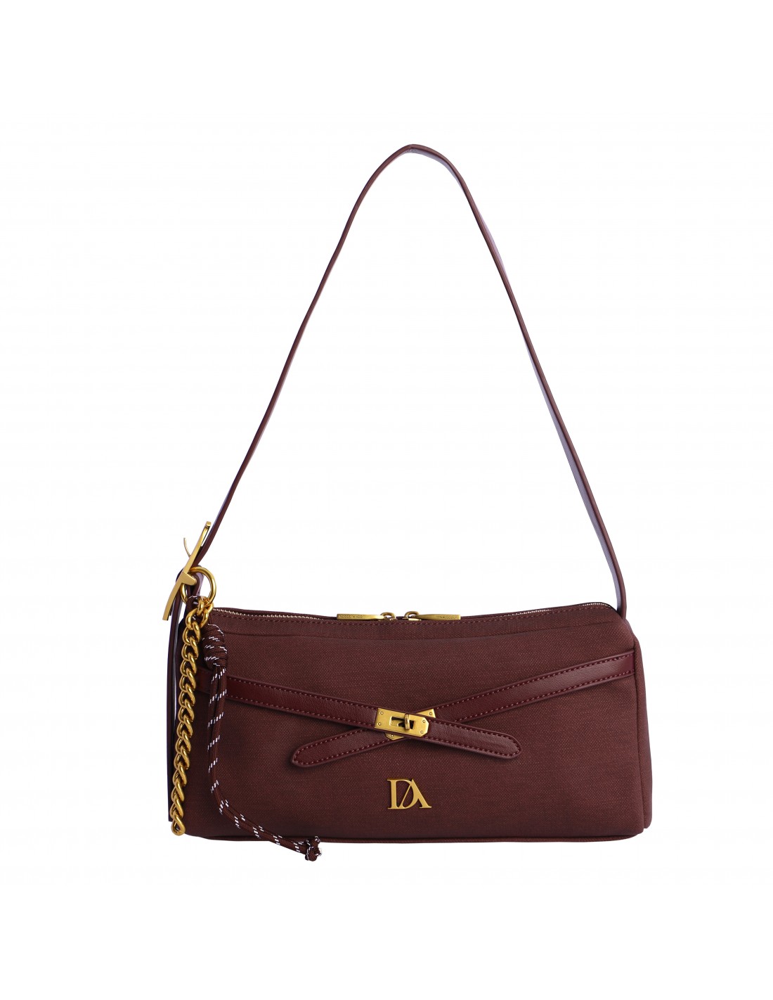 Bolso de hombro ajustable para mujer DON ALGODON Borela de piel sintética, con detalle decorativo frontal de correa y colgante de cadena y cordino con el logo en la parte frontal, tiene una asa intercambiable. Destaca por su elegante diseño y su practicidad.