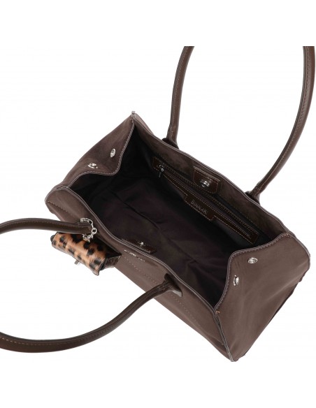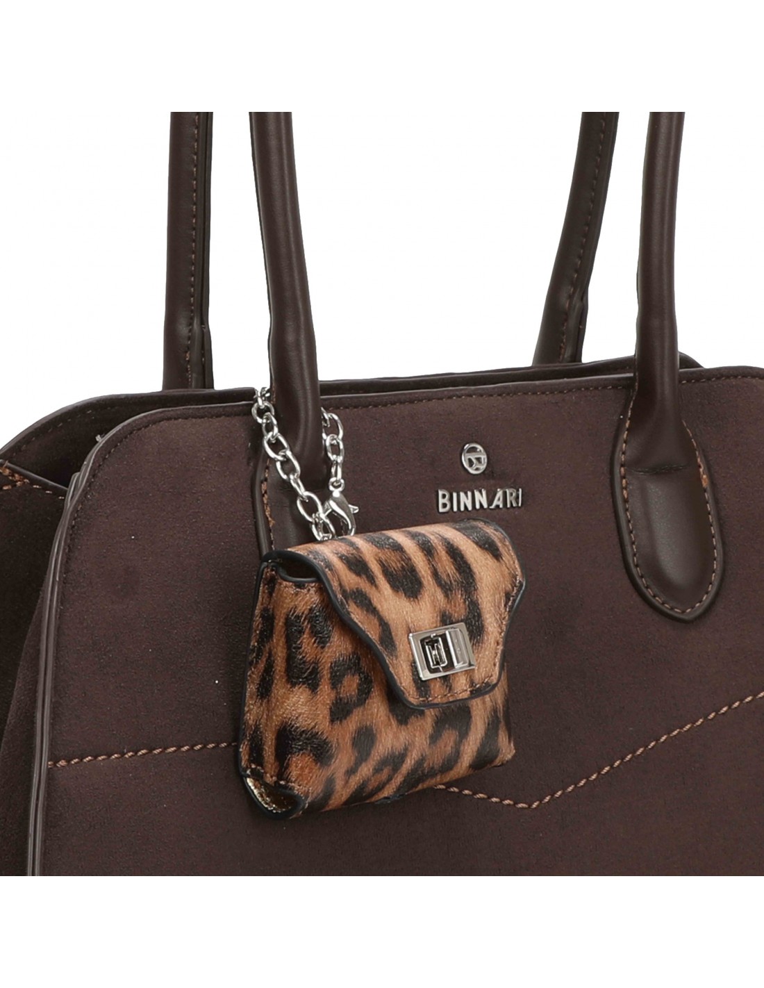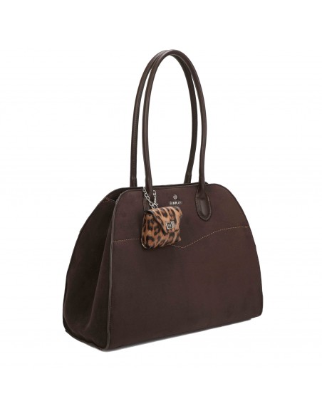 Fabricado en antelina de color marrón, el Bolso de Hombro Binnari Glen destaca por su elegancia y sofisticación. Su compartimento principal cuenta con cierre de imán y un bolsillo adicional con cremallera en su interior, perfecto para mantener tus pertenencias organizadas.
