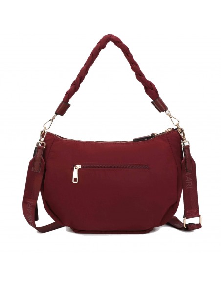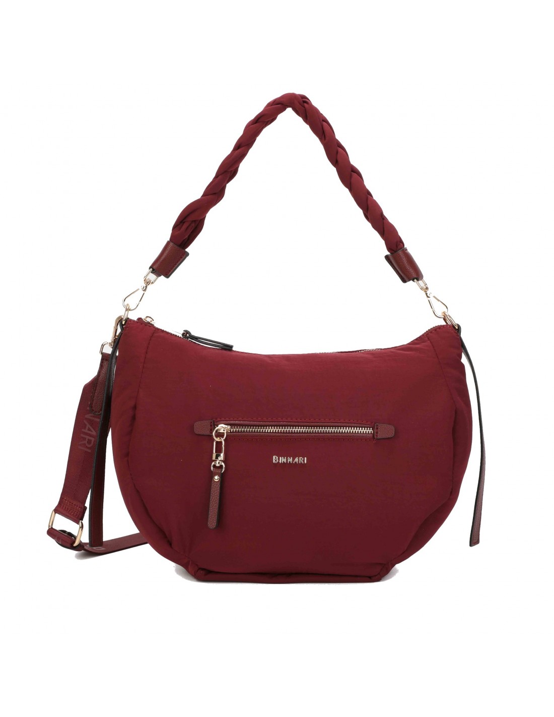 BOLSO DE HOMBRO CON BANDOLERA MEDIALUNA BINNARI EN COLOR BURDEOS
