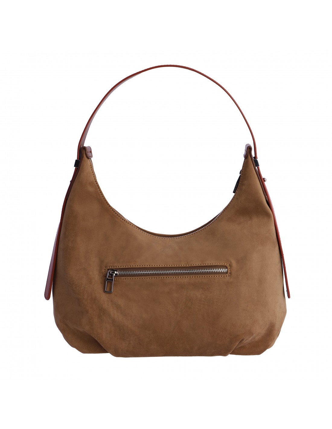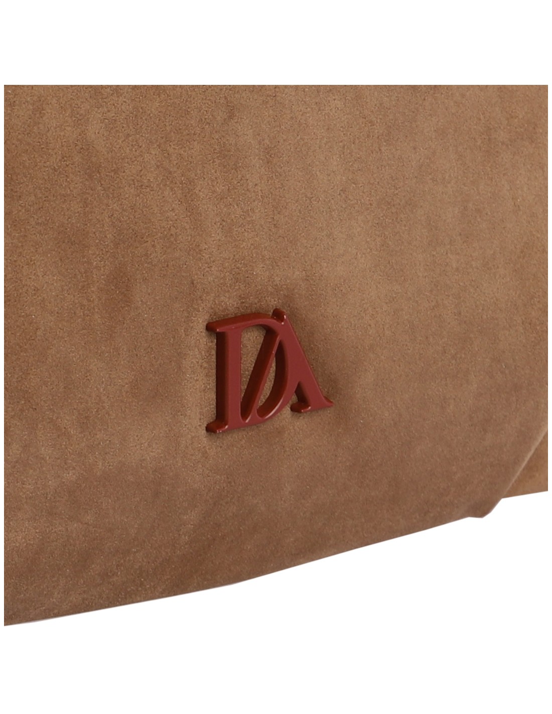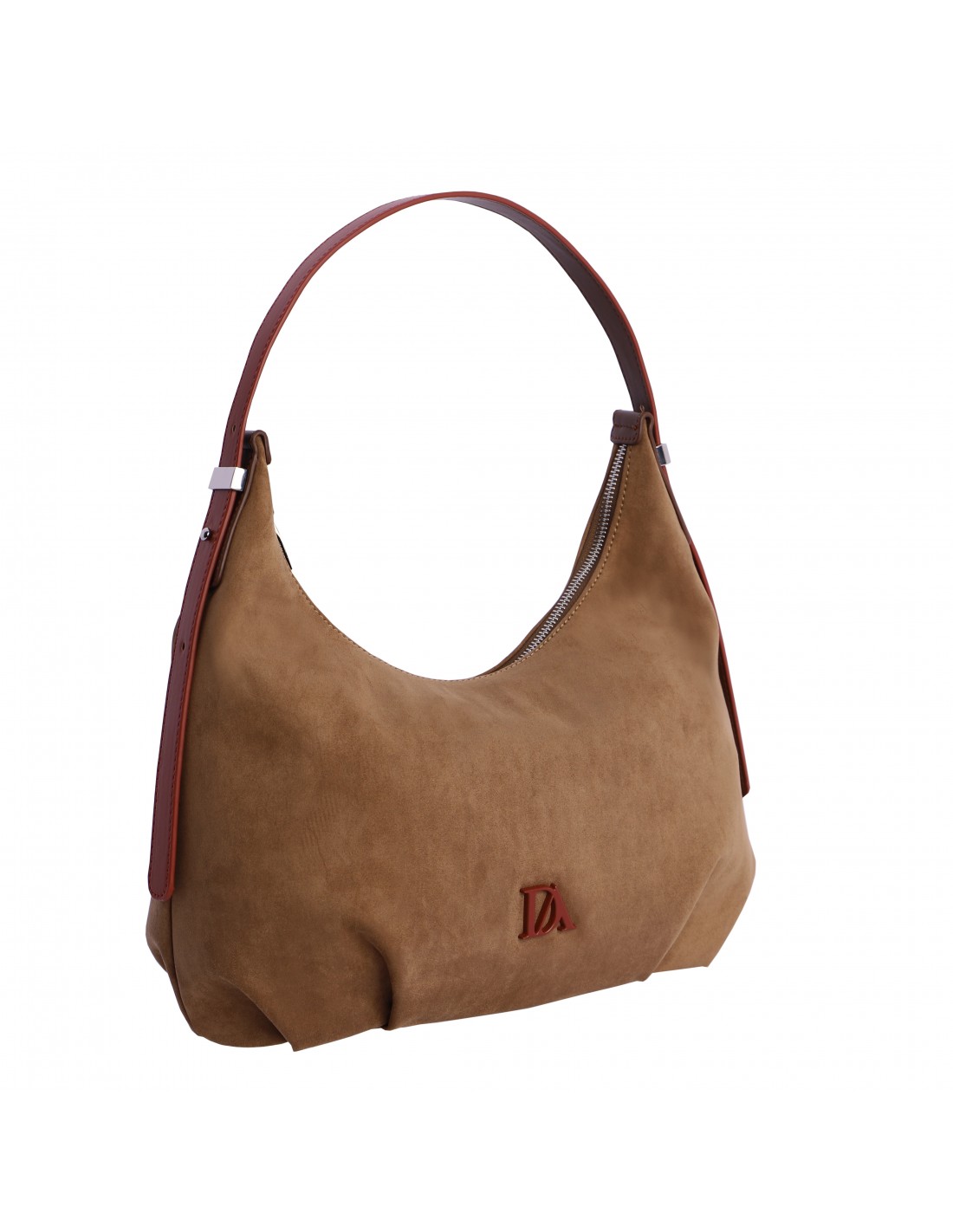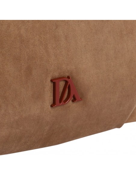 Bolso de hombro para mujer DON ALGODON Elvara de antelina, con el logo en la parte frontal. El asa es de piel sintética y regulable. Tiene cierre de cremallera con tirador metálico con logo, dispone de tres bolsillos interiores, dos delante y uno detrás con cremallera, más otro exterior detrás también con cremallera.