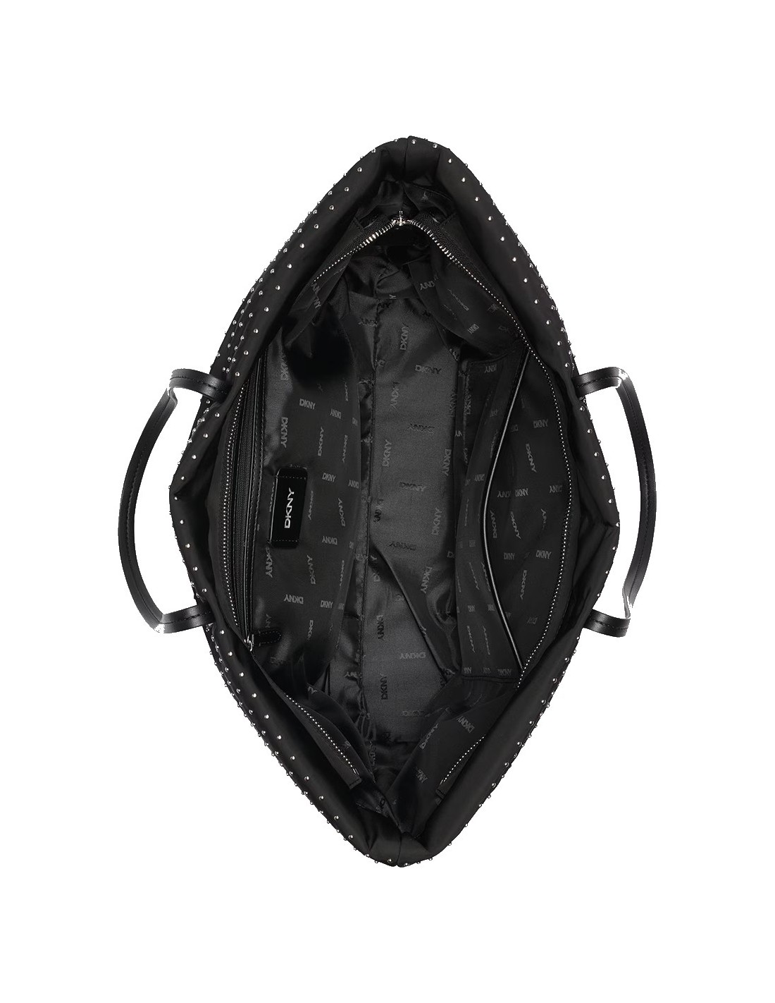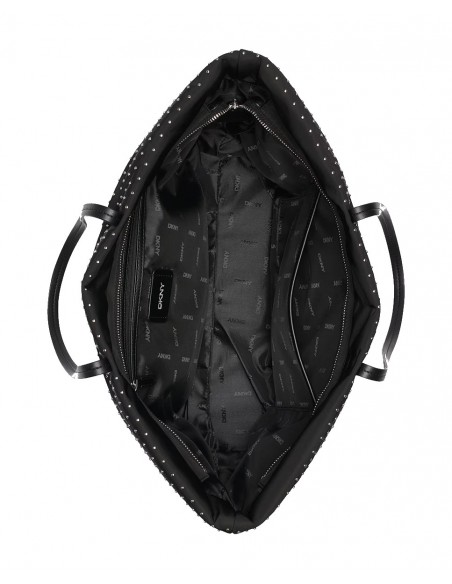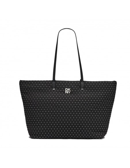 El bolso tote Jenny de DKNY está fabricado en un material duradero y resistente, con un detalle especial de tachuelas y logo DKNY metalizado en el asa de hombro, que le otorgan un toque moderno y sofisticado.