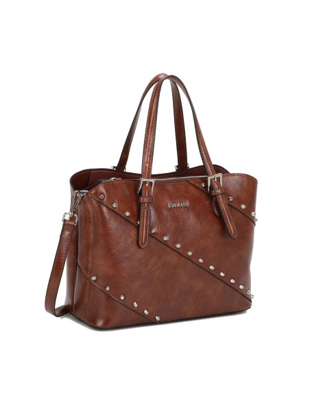 BOLSO DE MANO BINNARI FREEDA CON TACHUELAS EN COLOR CUERO