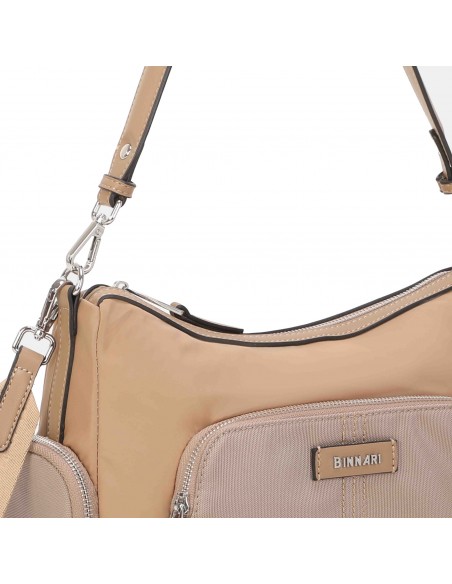 BOLSO DE HOMBRO BINNARI AURA CON BANDOLERA EN COLOR TIERRA