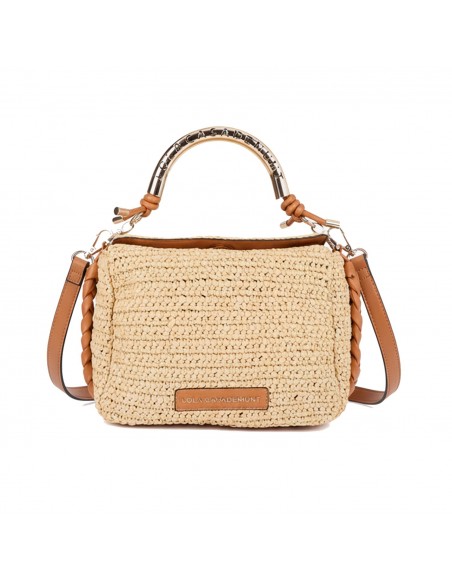 Elegante bandolera de diseño estival con efecto rafia y asa troquelada metálica con logo. Destaca por su confección en materiales de alta calidad y su cierre magnético. Ideal para añadir un toque de estilo.