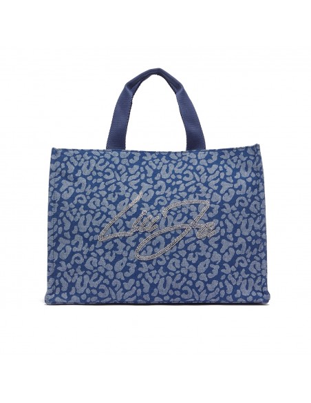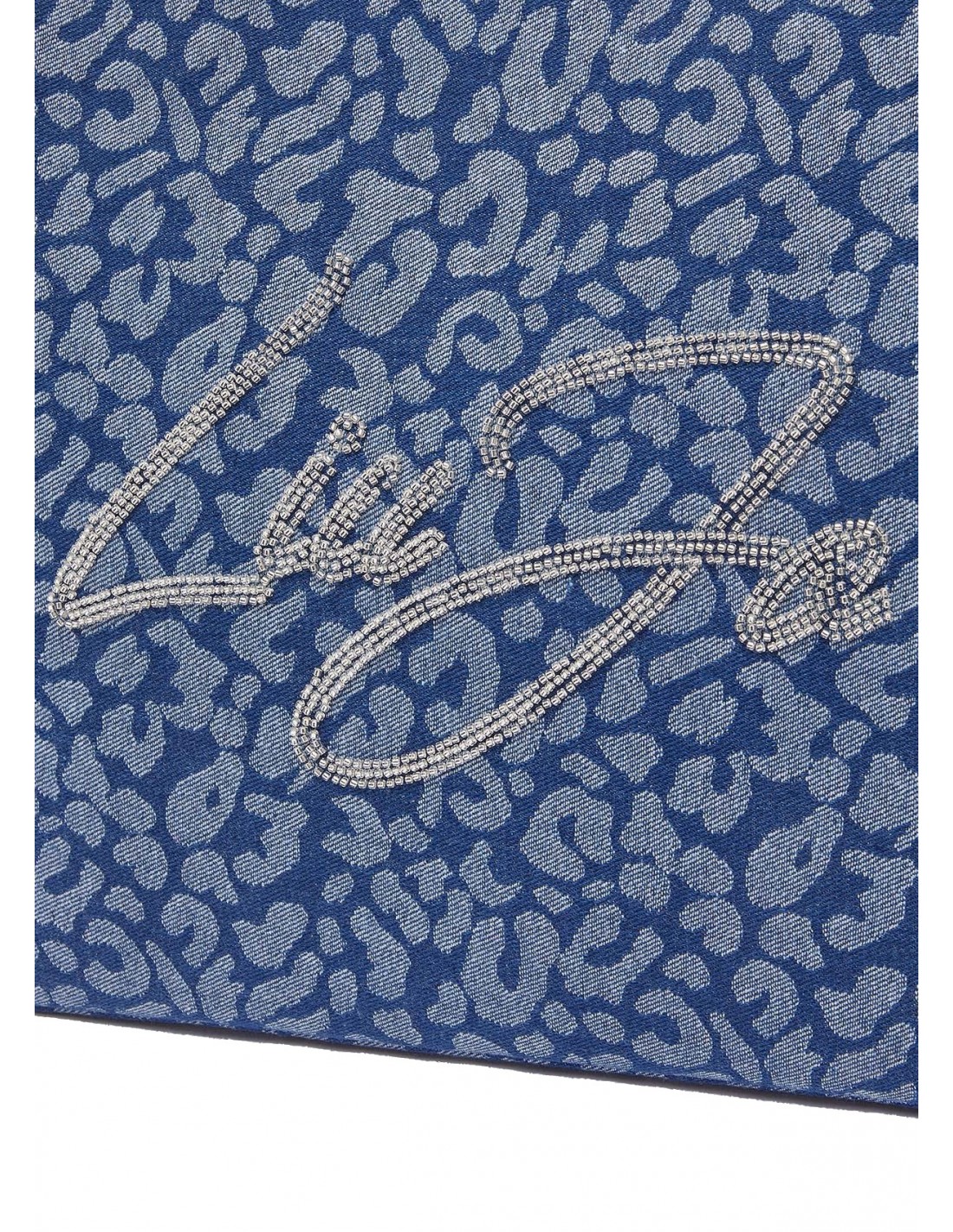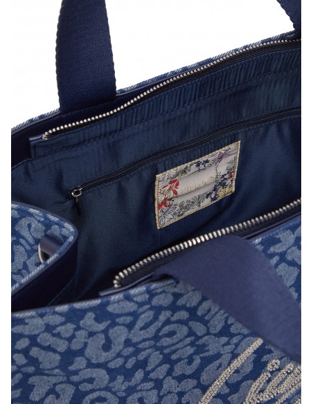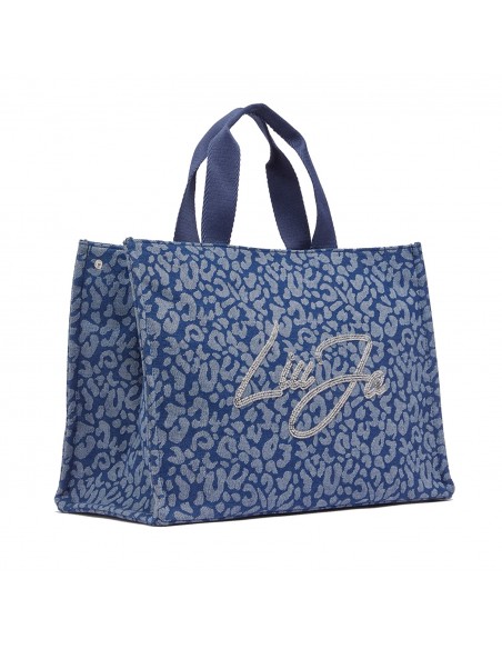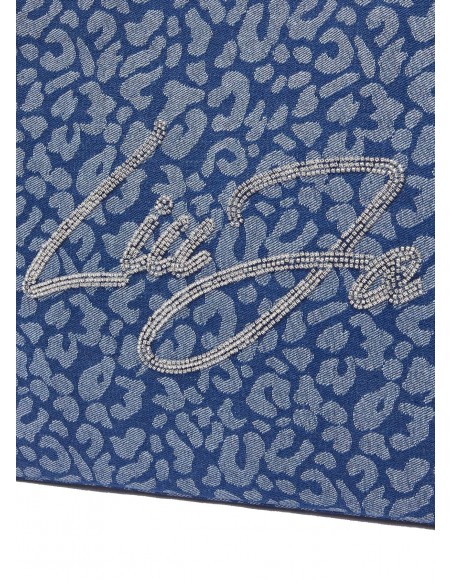 Un bolso tote de denim con estampado animal, perfecto para lucir un look casual y sofisticado a la vez. Destaca por su logotipo de Liu Jo bordado con cuentas, que le da un toque de elegancia único.