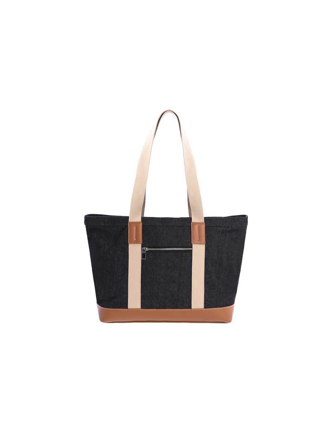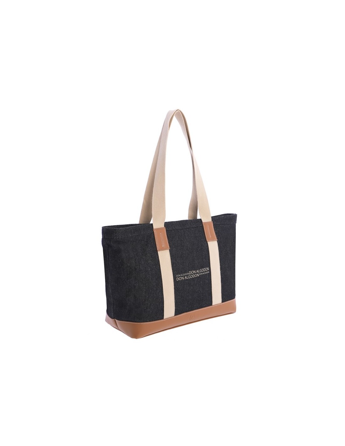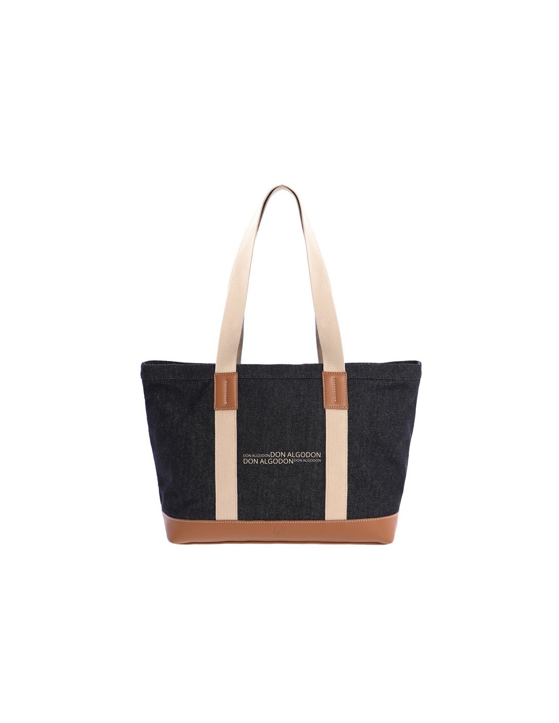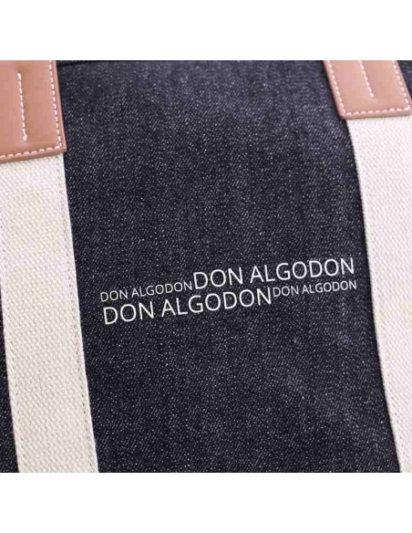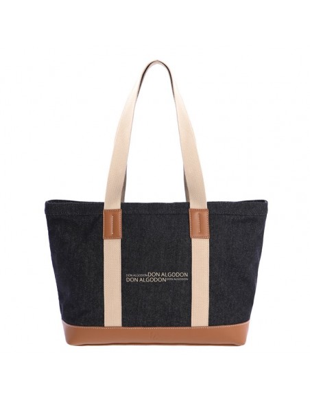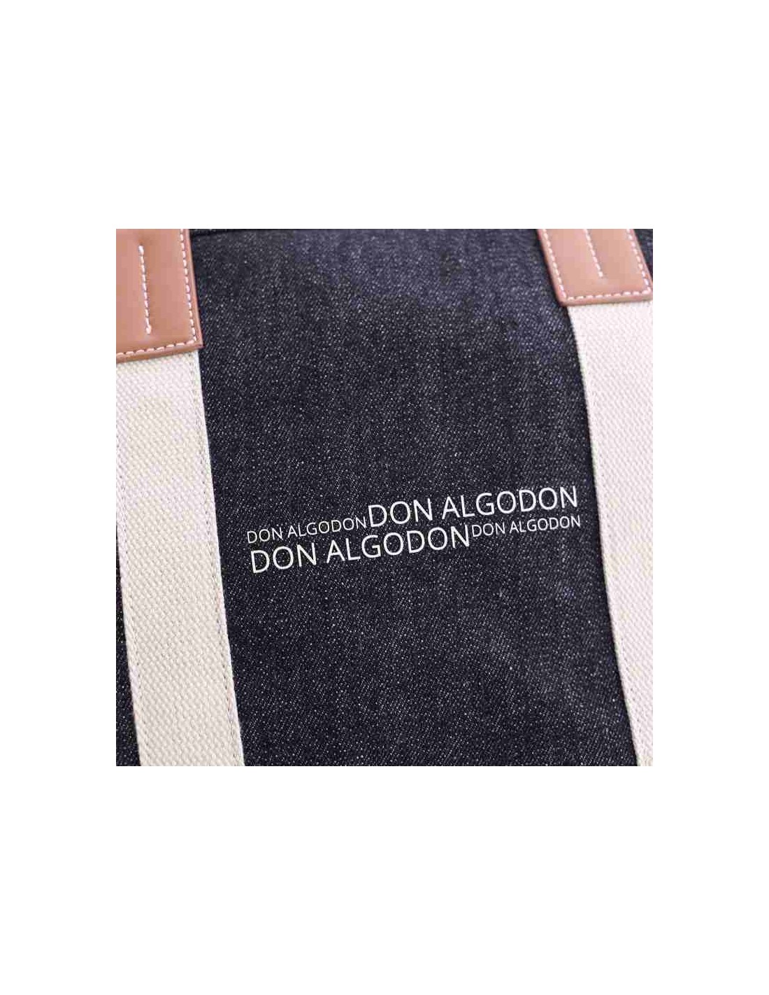 El Bolso shopper Tabarca de Don Algodón está hecho de tejido tipo denim y cuenta con asas anchas de algodón. Destaca por su base de piel sintética y su logo estampado en la parte frontal.