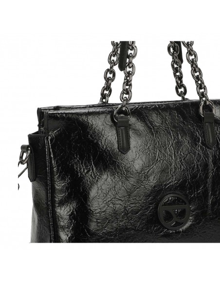 El bolso Binnari Camelia está confeccionada en PU metalizado color negro que le aporta un toque especial y muy actual.