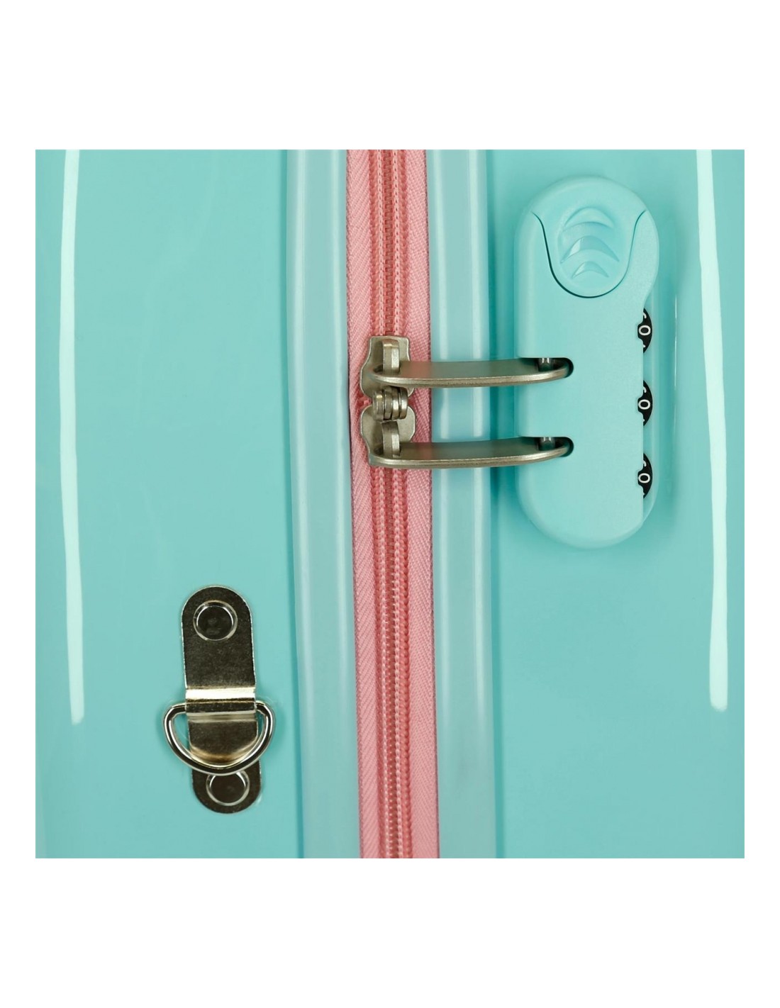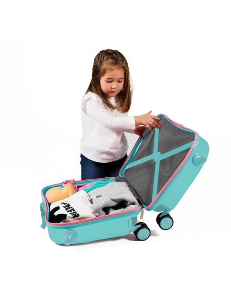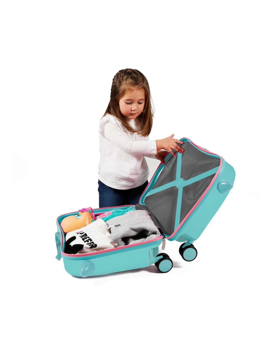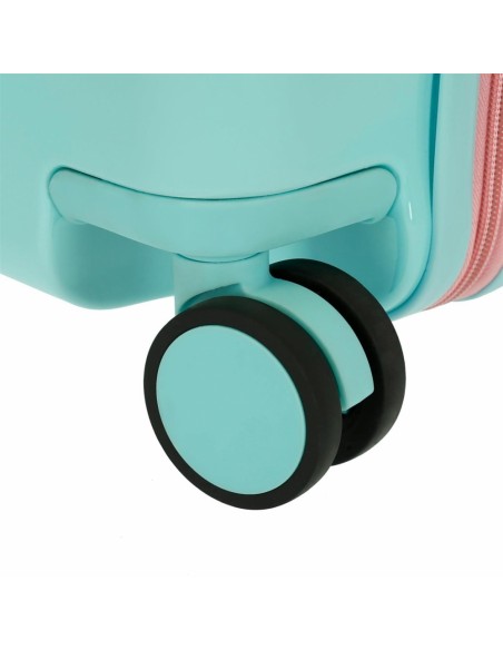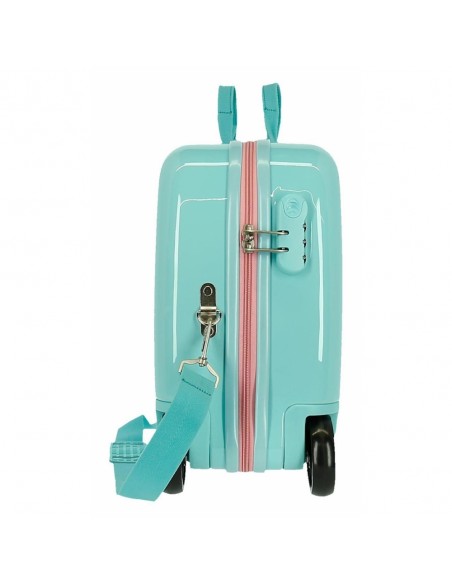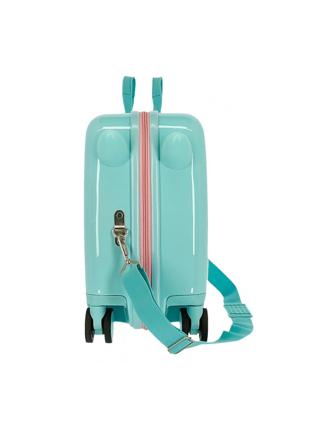 Maleta infantil de 38 cm x 50 cm x 20 cm. Tem uma capacidade de 34L e pesa 2,1 kg. e está fabricada em ABS, um material rígido e leve. Rodas dianteiras duplas de giro multidirecional. O peso máximo recomendado que suporta a mala é de 30kg. (Perfeita para uma criança entre 3 e 7 anos) Gomas elásticas de ambos os lados para manter a bagagem organizada e fecho de combinação lateral para aumentar a segurança.