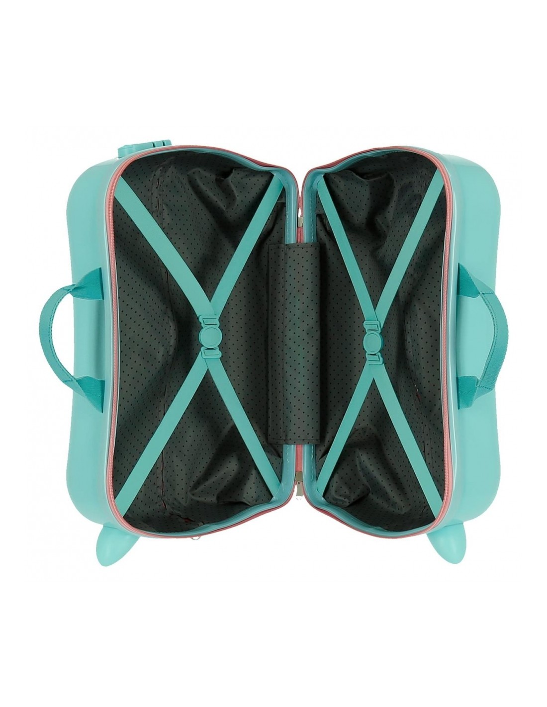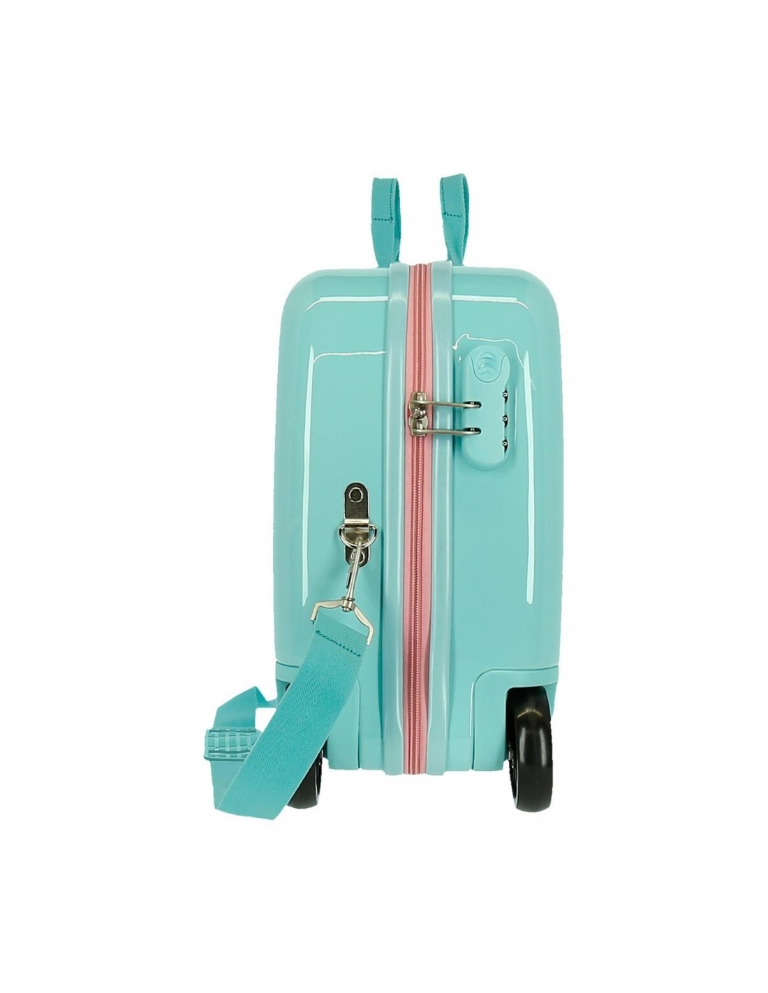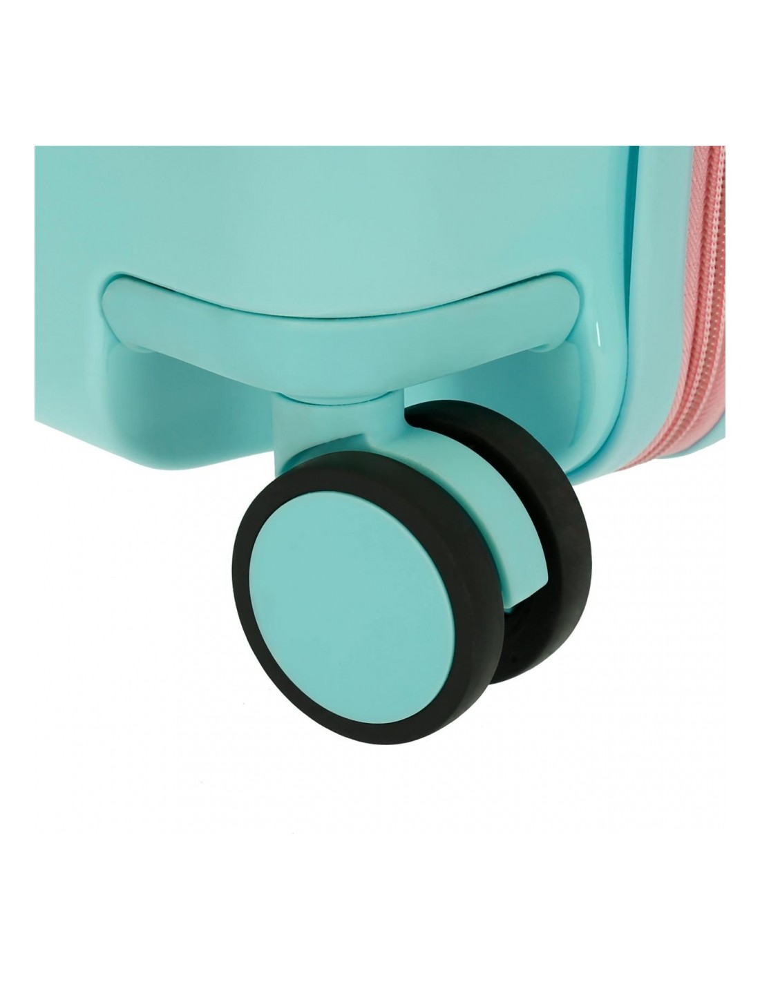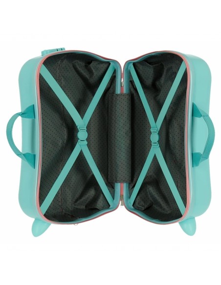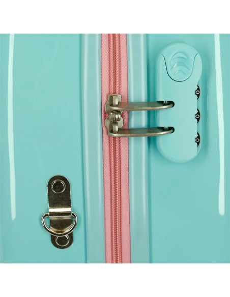 Maleta infantil de 38 cm x 50 cm x 20 cm. Tem uma capacidade de 34L e pesa 2,1 kg. e está fabricada em ABS, um material rígido e leve. Rodas dianteiras duplas de giro multidirecional. O peso máximo recomendado que suporta a mala é de 30kg. (Perfeita para uma criança entre 3 e 7 anos) Gomas elásticas de ambos os lados para manter a bagagem organizada e fecho de combinação lateral para aumentar a segurança.