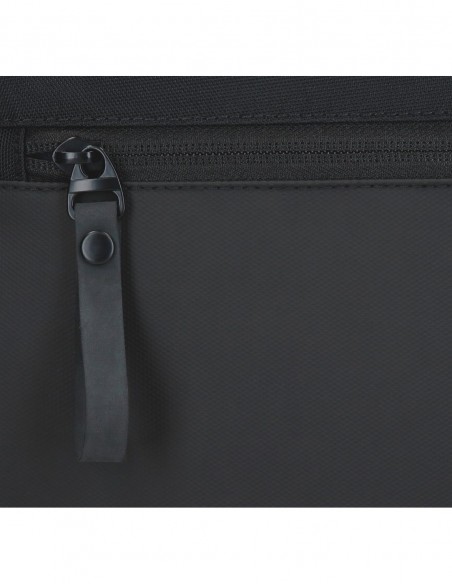 Inclui um compartimento principal com dois bolsos interiores, um para o telemóvel e outro com fecho de correr, além de bolsos frontal e traseiro com fecho de correr.