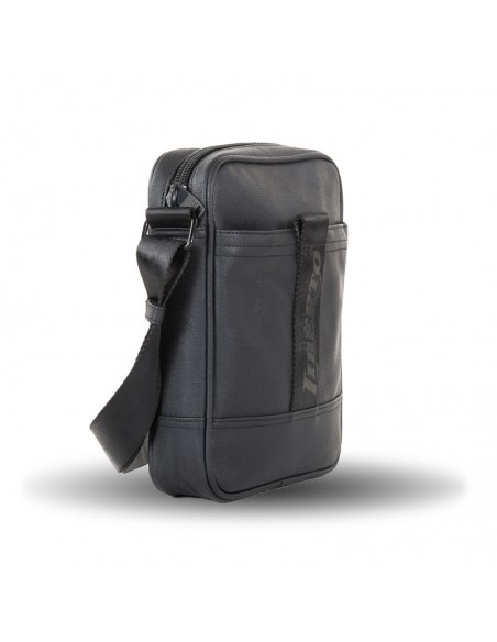 O bolso cruzado para homem Liberto Buenos é fabricado em um resistente material PU na cor preta.