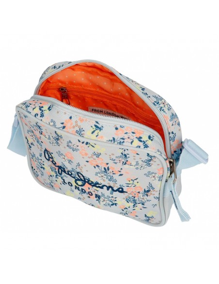 O bolsa de ombro tipo bandoleira da Malila da Pepe Jeans London é fabricada em poliéster e apresenta um bonito padrão floral sobre fundo azul céu.