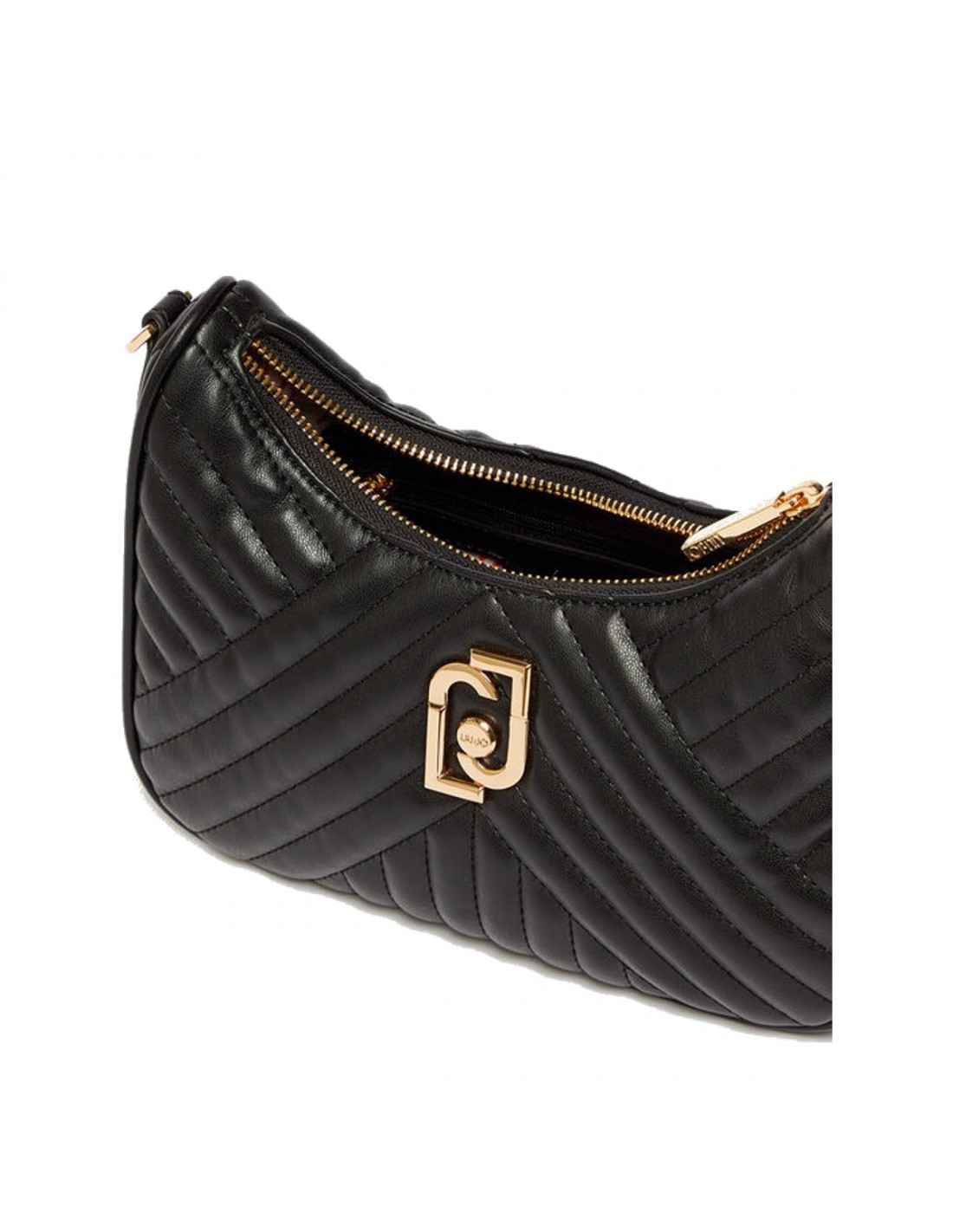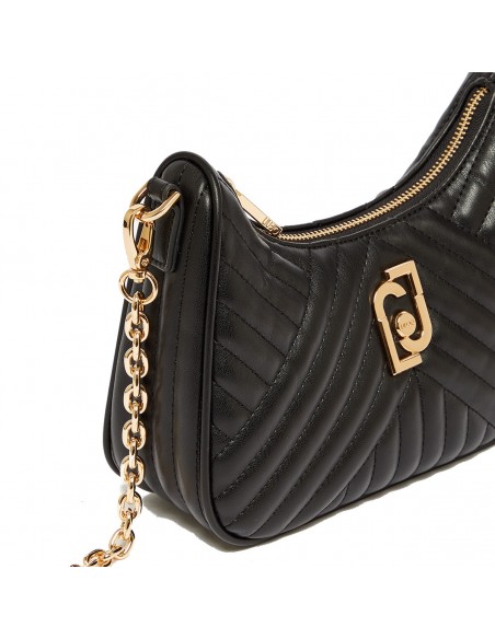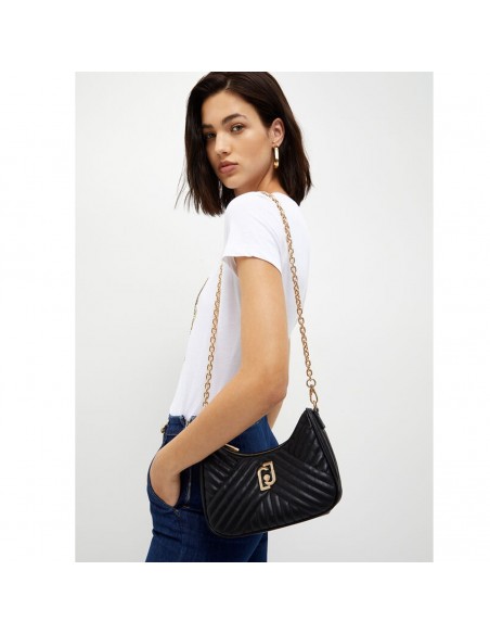 A bandoleira Liu Jo apresenta um acabamento acolchoado e inclui duas alças removíveis e intercambiáveis: uma de gorgurão e outra de corrente dourada para o ombro.