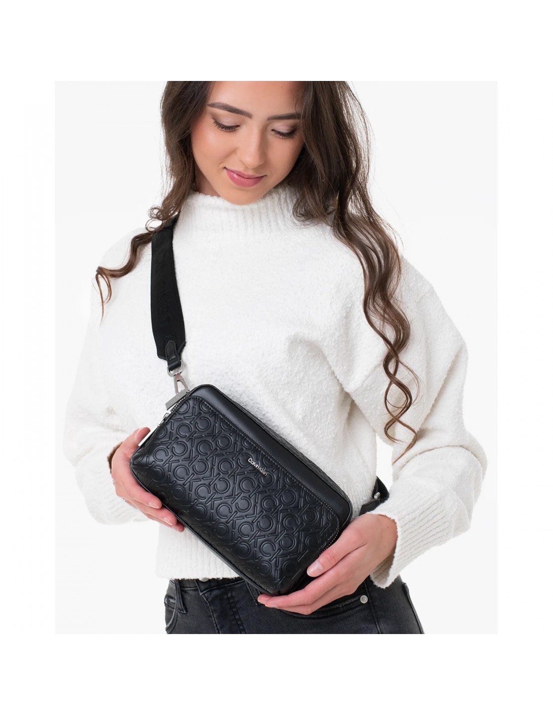 A bandoleira Calvin Klein Must Camera é confeccionada em material sintético com 50% de materiais reciclados.