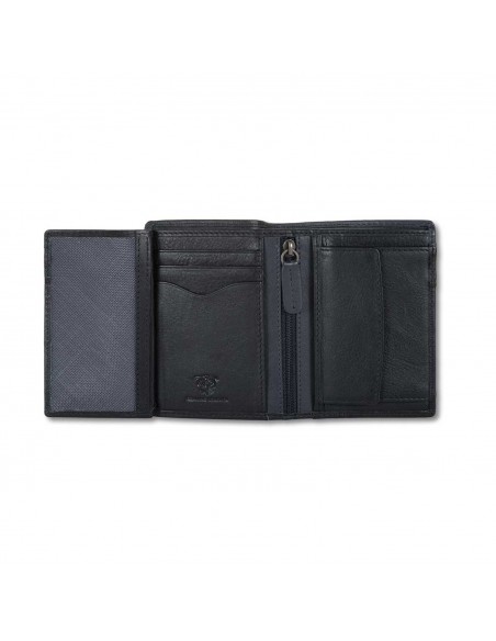 Esta carteira é perfeita para organizar os seus cartões e dinheiro de forma confortável e segura. Com dois compartimentos interiores, um duplo espaço para notas traseiro, um compartimento transparente e um porta-moedas com fecho de botão, terá tudo o que precisa ao alcance da sua mão. Não espere mais para adquirir a sua!