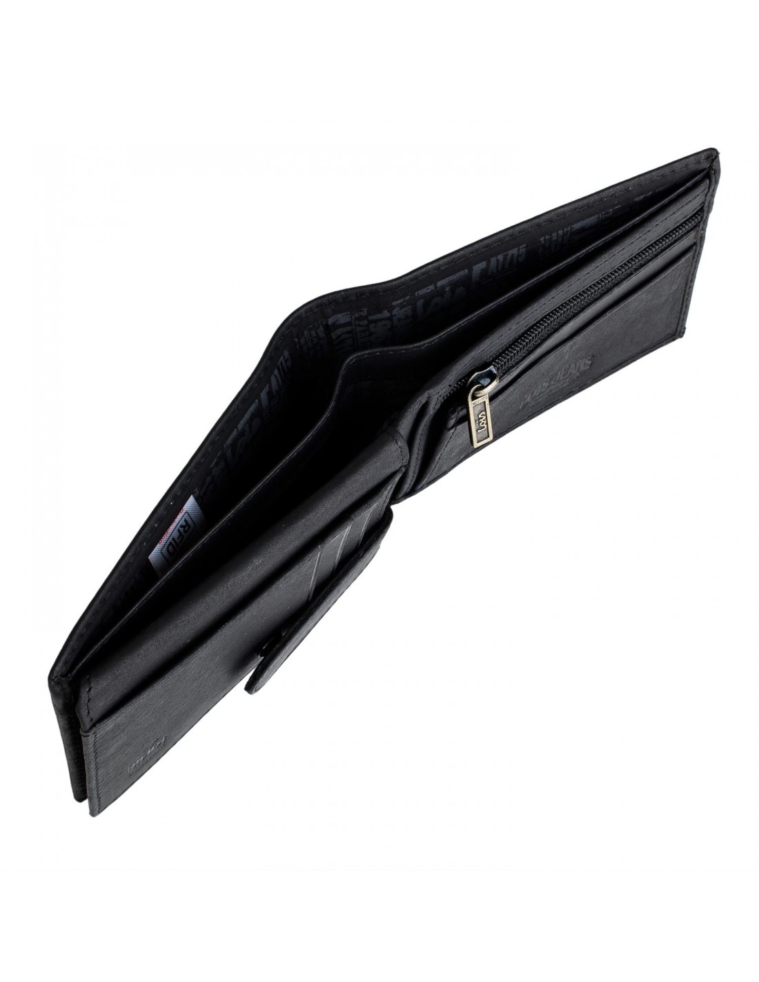 Esta carteira de homem com porta-moedas incorpora a última tecnologia RFID Protection que impede o acesso por rádio frequência aos nossos cartões.