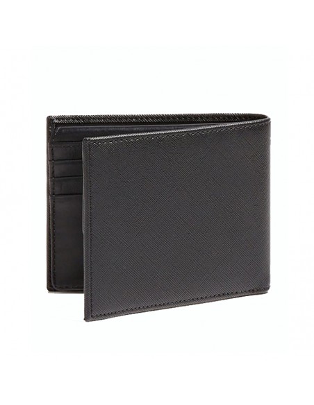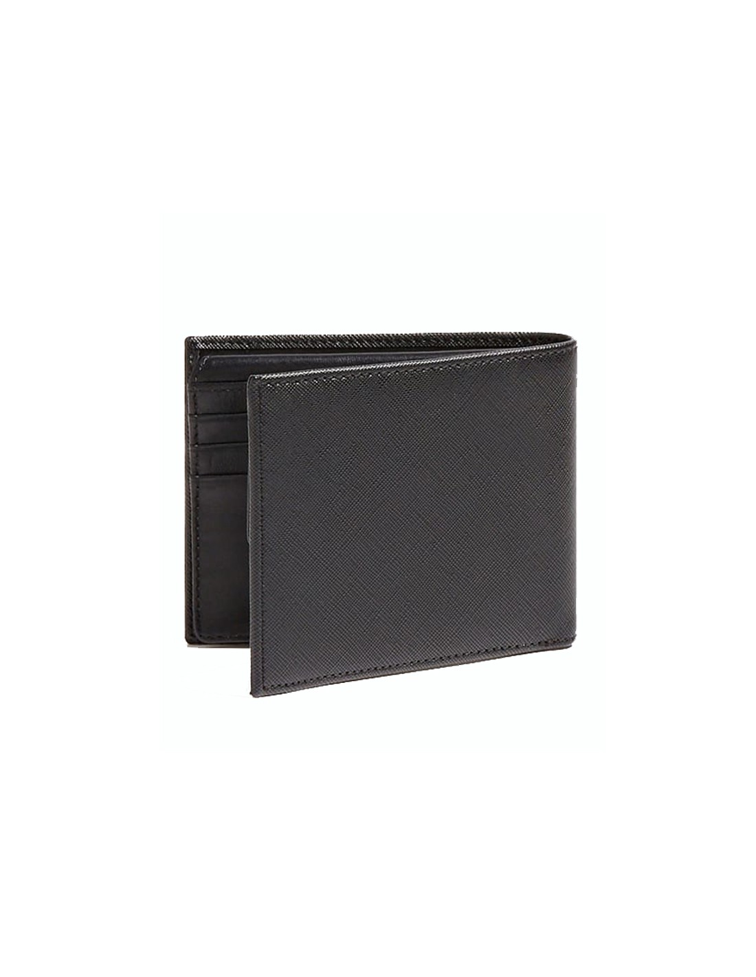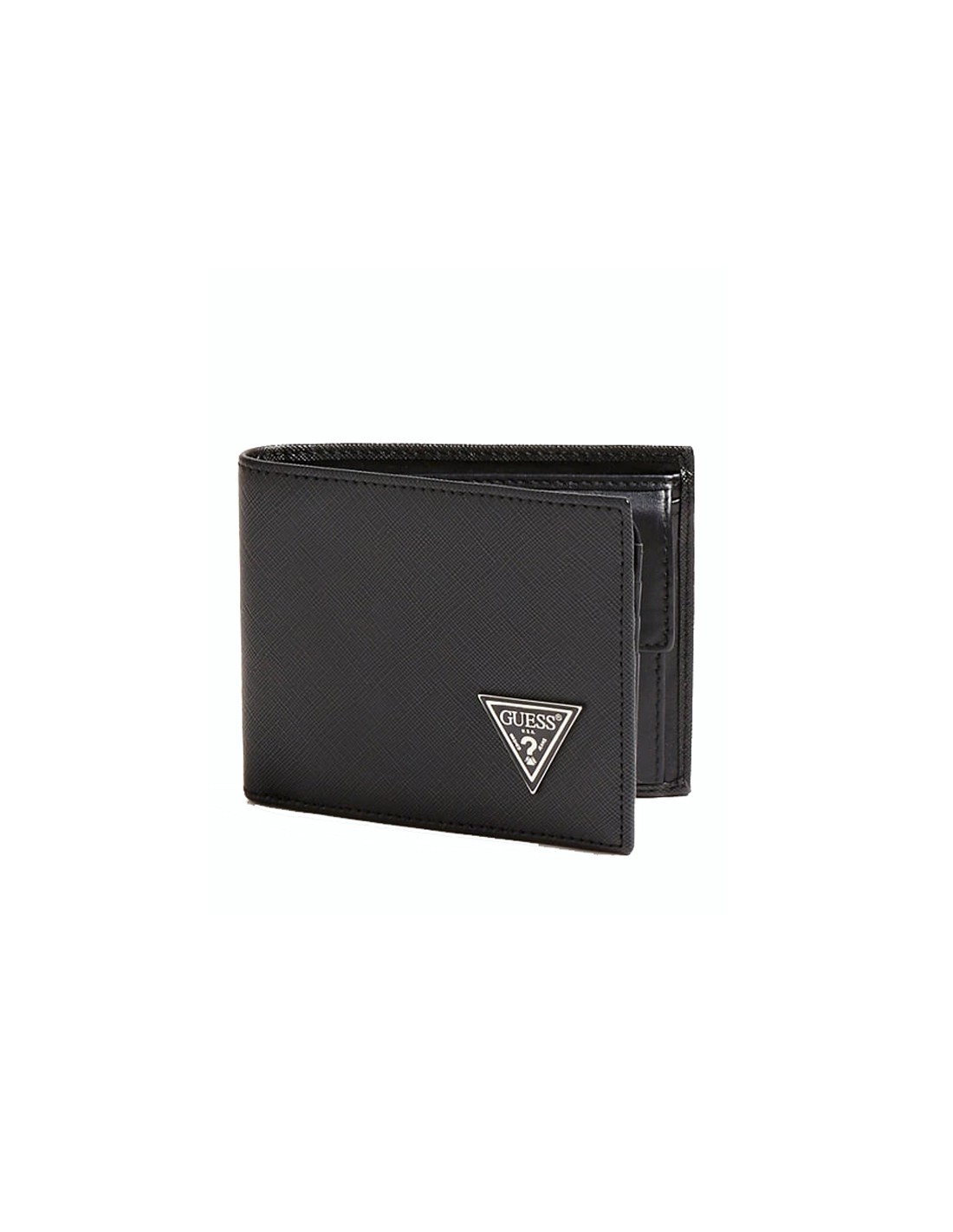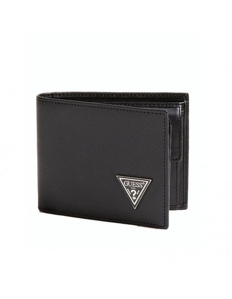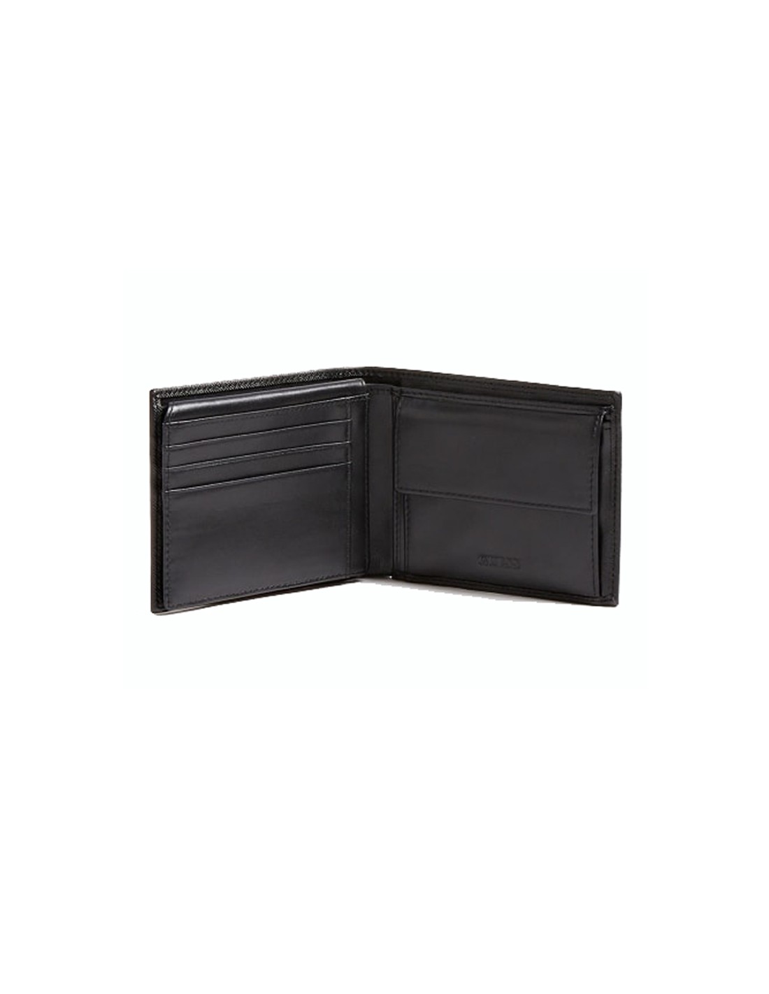 Carteira americana Certosa Guess homem de design horizontal e abertura lateral, confeccionada em mistura de pele, 50% pele autêntica e 50% poliuretano na cor preta com motivo saffiano.