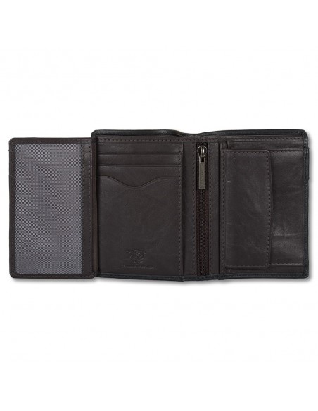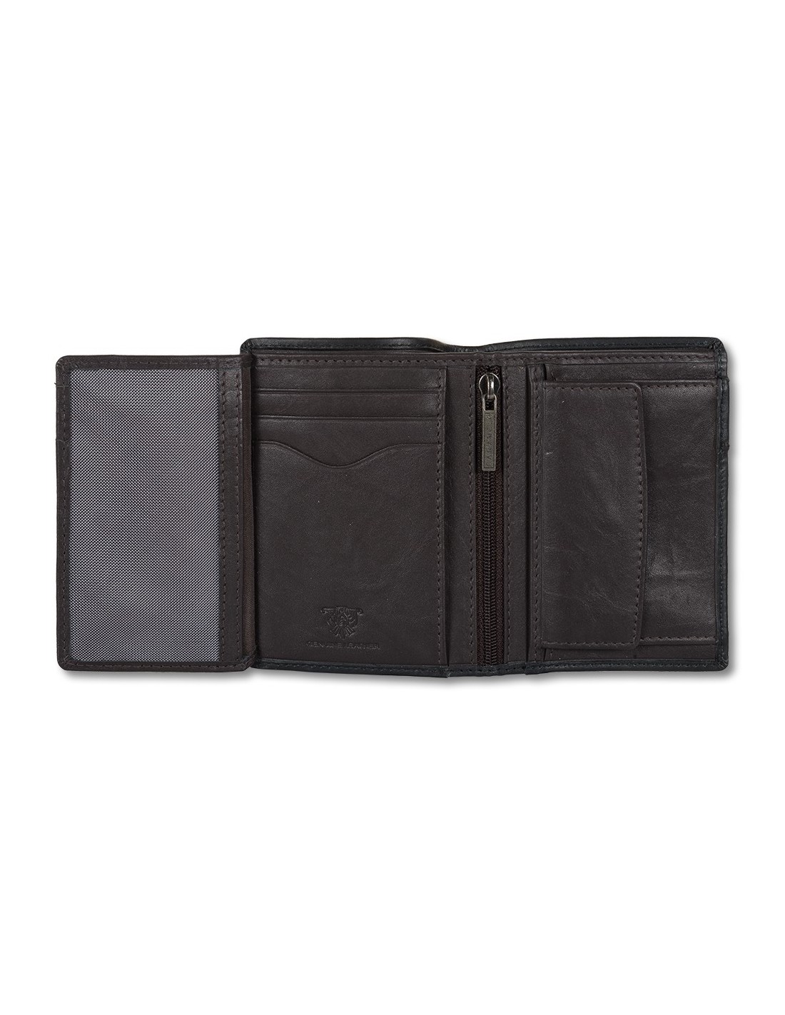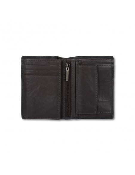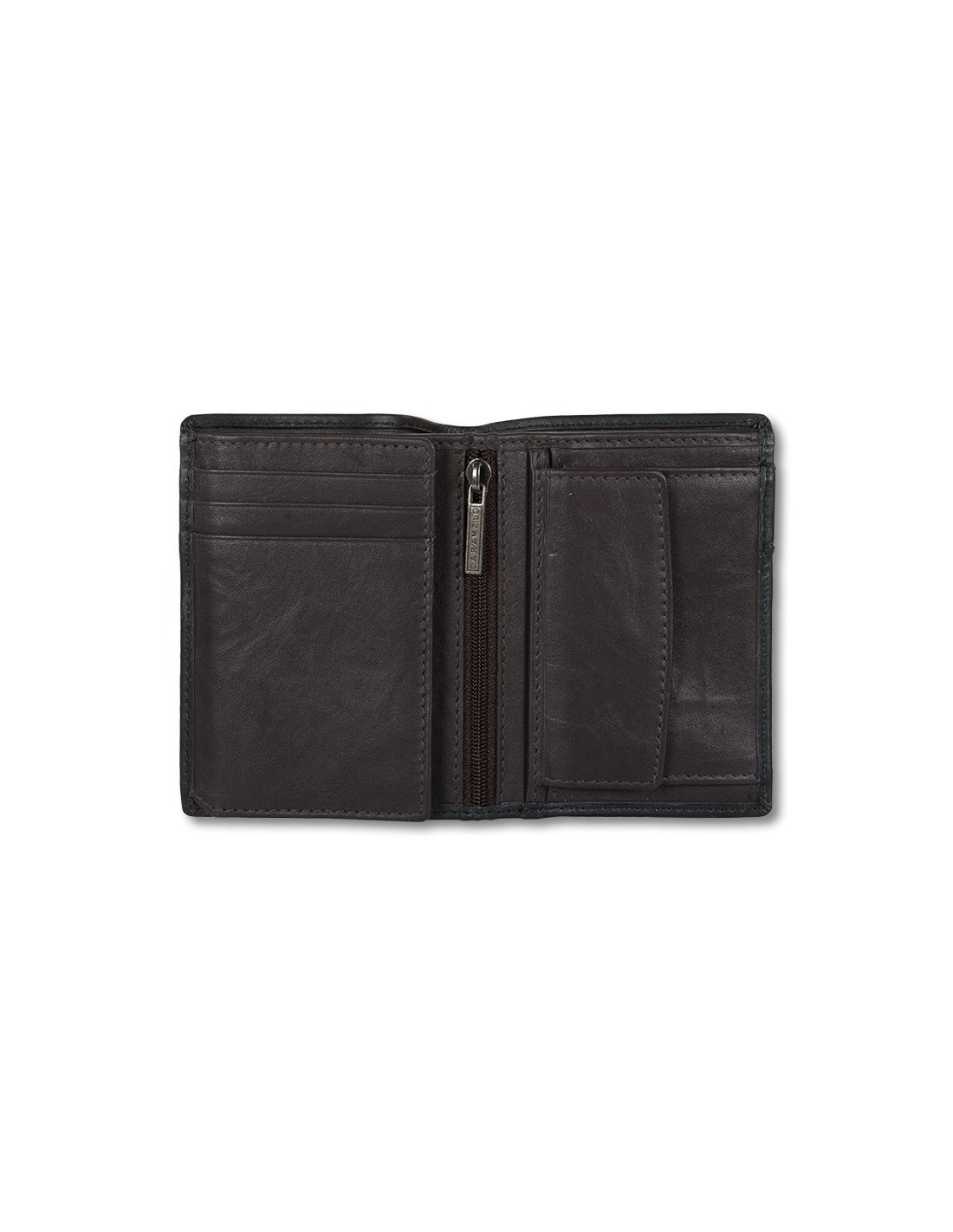 Também possui um duplo porta-moedas, um com fecho de correr e outro com botão.