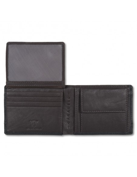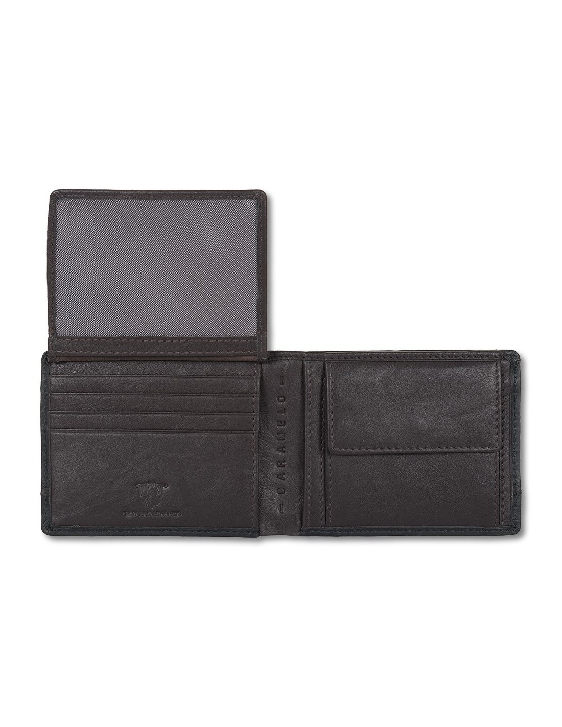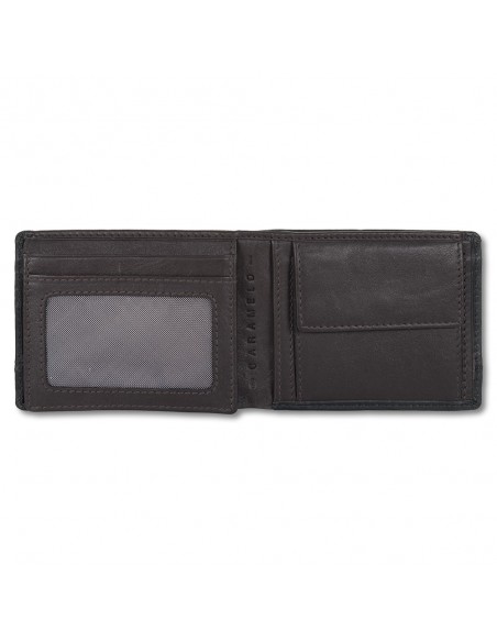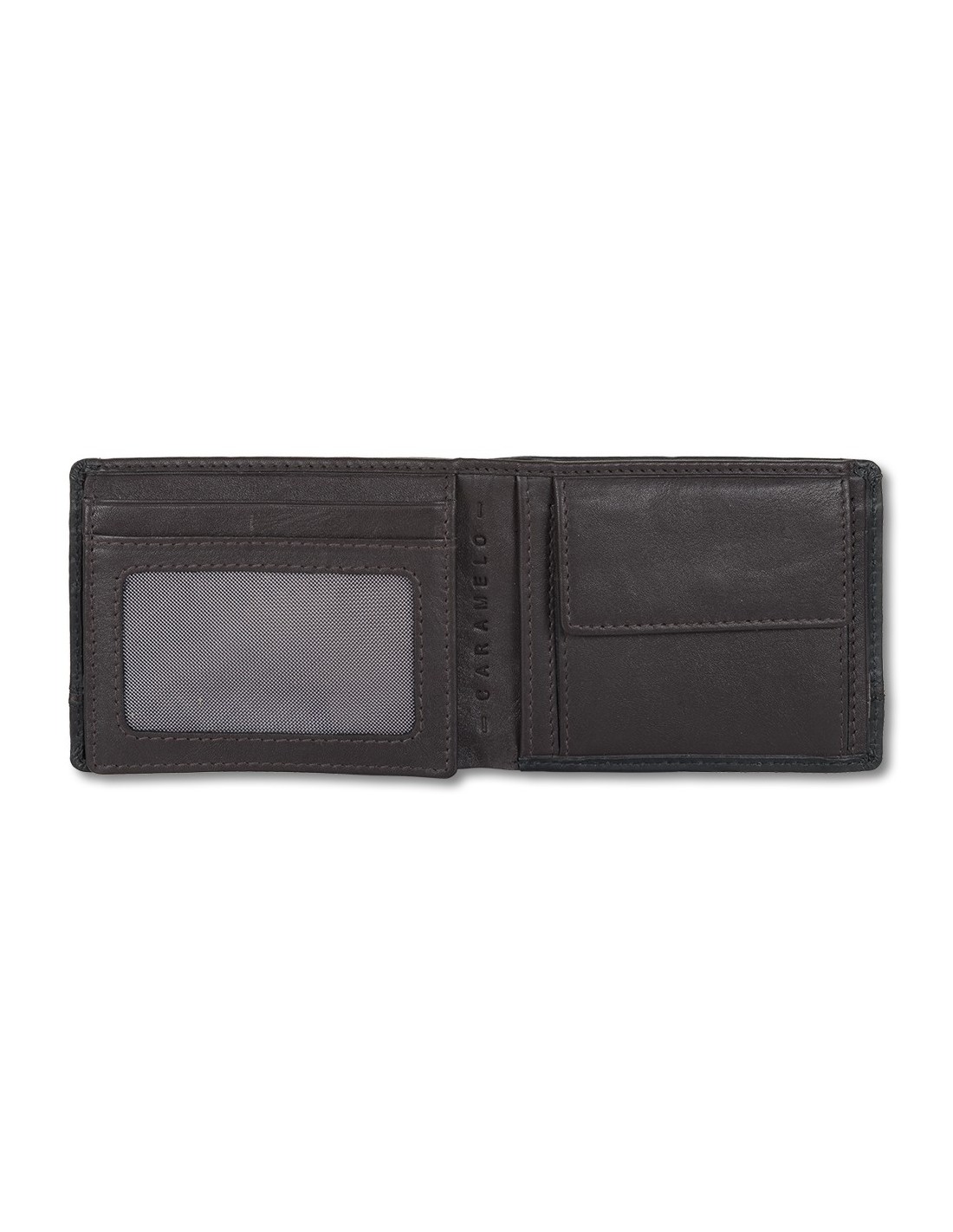 Confeccionada em pele, cor negra, a carteira Caramelo Argo apresenta um elegante design horizontal, sem fecho, altamente funcional.